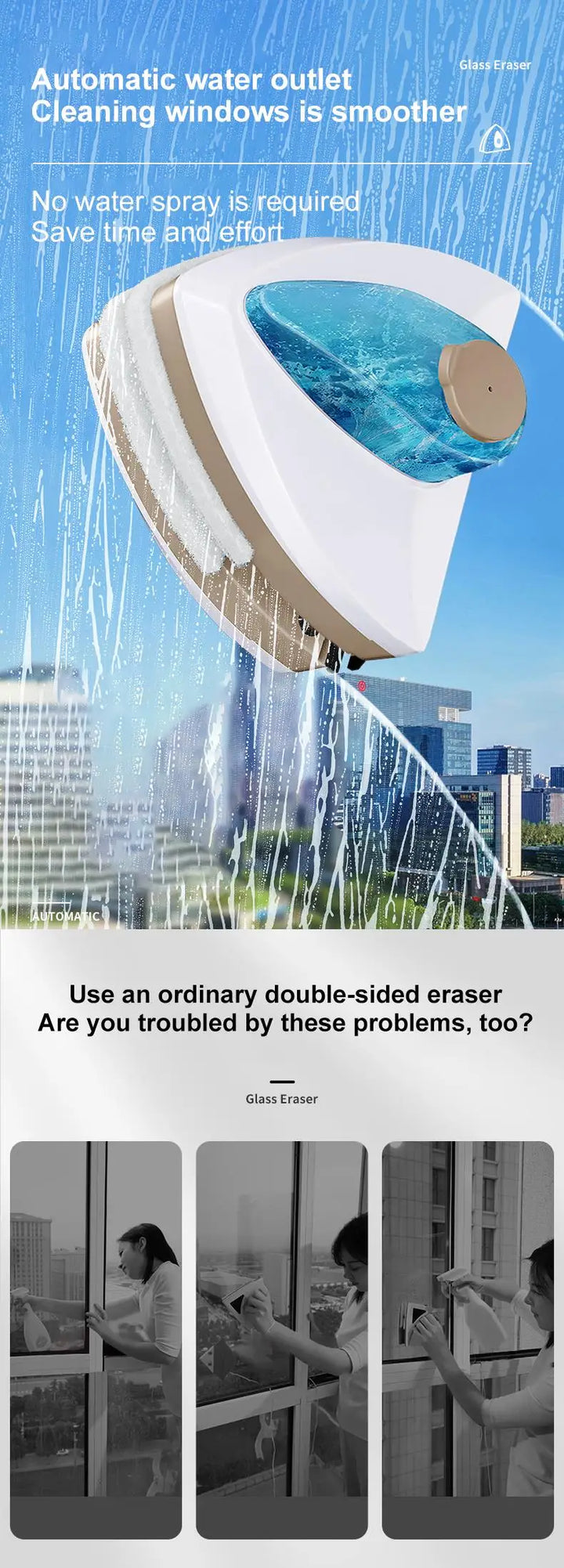 Magnetic double-sided window cleaner brush with automatic water discharge design. Cleans both sides of glass at once—ideal for home windows, balconies, and high-rise use. Durable, easy to use, and perfect for streak-free cleaning.