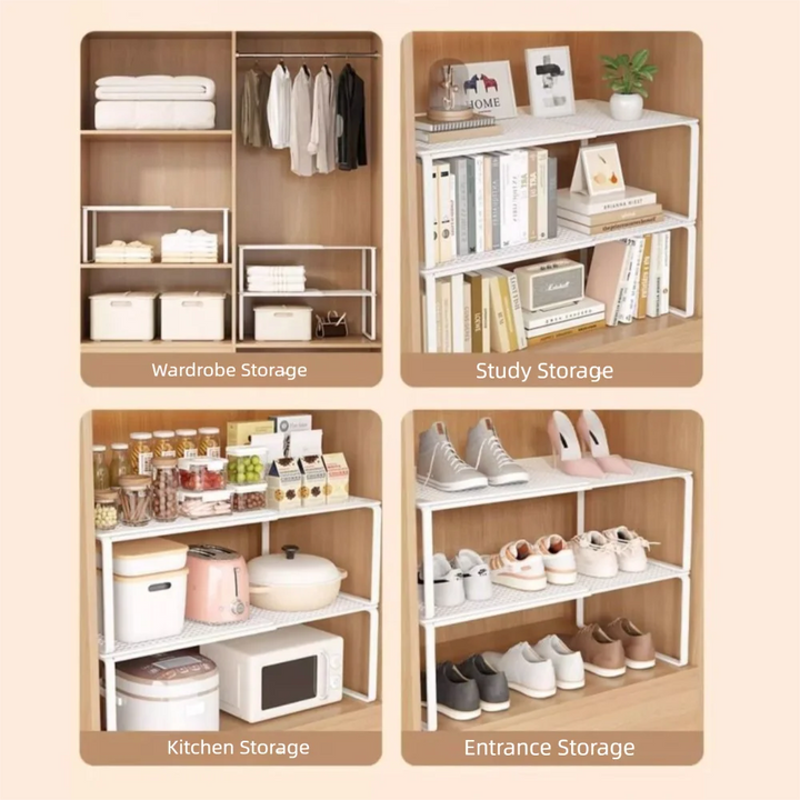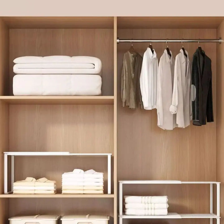 Maximize your storage space with this DIY Metal Closet Shelf. The adjustable, expandable, and retractable design fits various wardrobe or kitchen sizes — perfect for organizing clothes, towels, or household items. Durable and easy to install, it’s an ideal space-saving solution for any home.