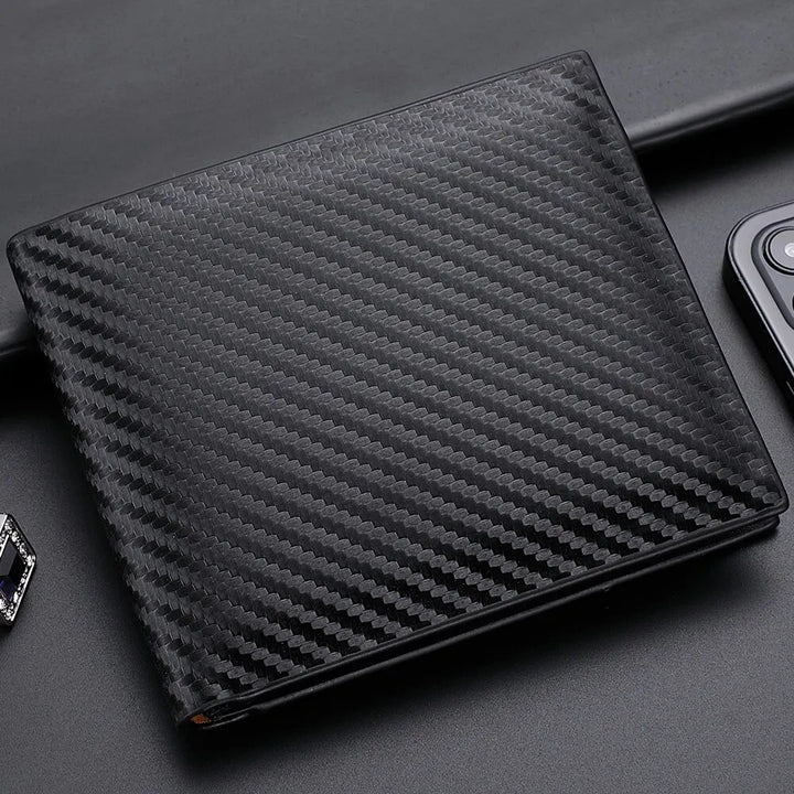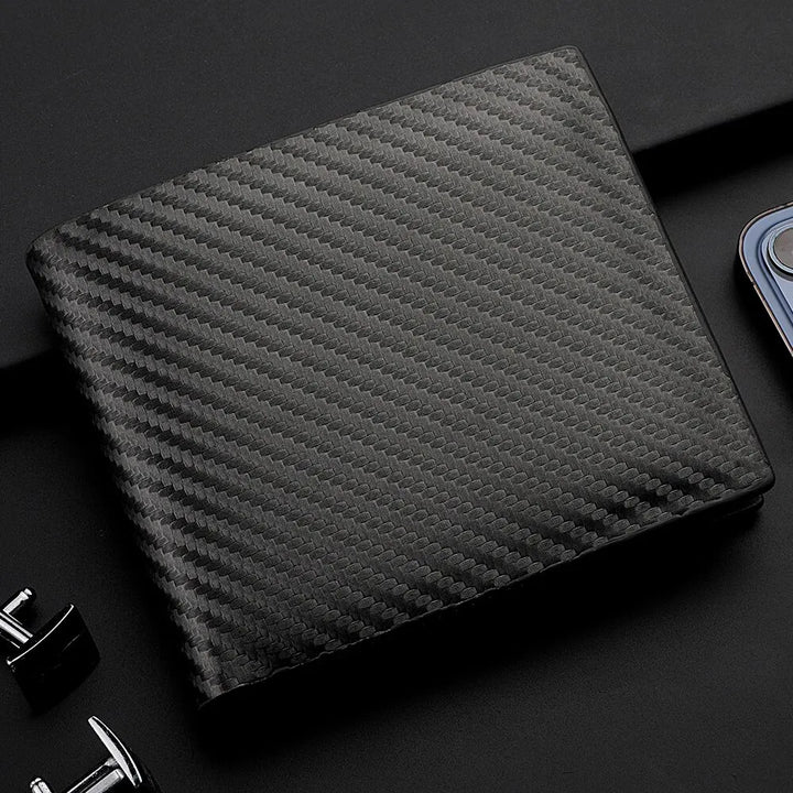 Stay stylish and organized with this men’s carbon fiber short wallet, featuring multiple card slots and an integrated zipper coin pocket. Its sleek, lightweight, and durable design combines modern style with practicality, perfect for both business and everyday use.