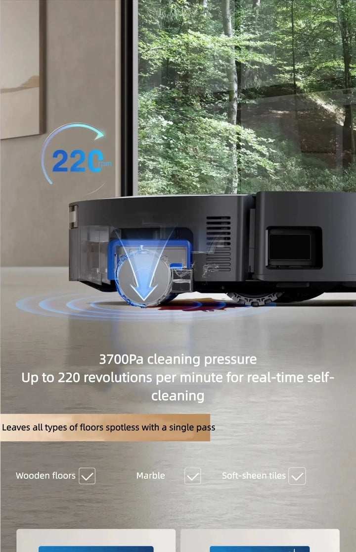 Equipped with intelligent navigation, strong suction power, and automatic water control, it ensures spotless results on every surface — all managed effortlessly via smart app control.