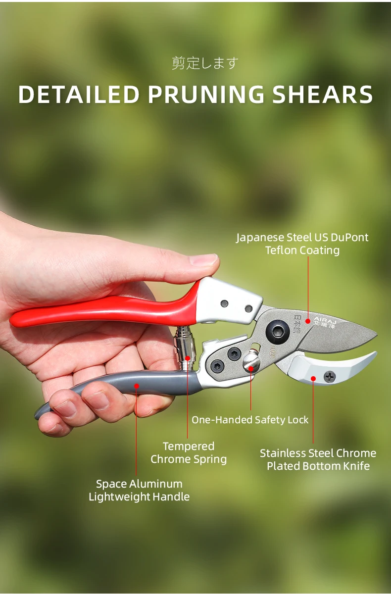 Durable garden pruning shears designed for fruit tree branches and general garden trimming. Ergonomic and labor-saving for efficient outdoor maintenance.