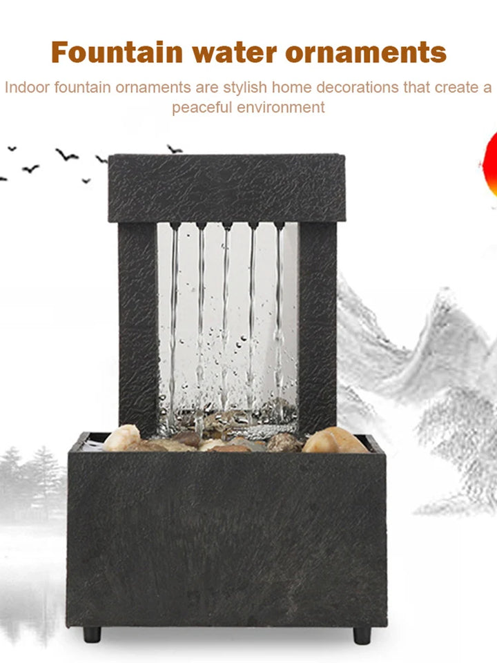 Indoor Waterfall Fountain – Flowing Water Desktop Ornament for Bedroom, Living Room & Study