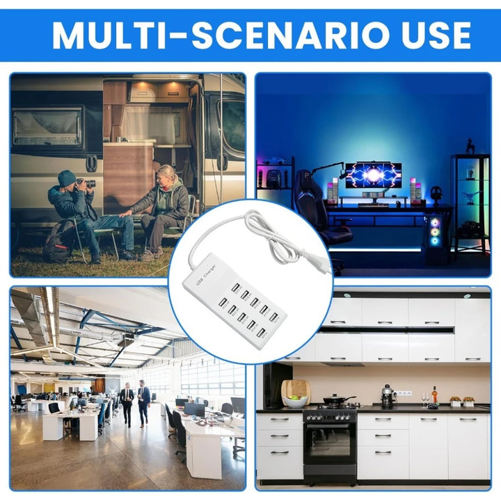 Stay powered anywhere with this 50W/35W 6 or 10-Port USB Fast Charging Power Strip. Designed for multi-device convenience, it charges iPhone 13, Samsung, Xiaomi, tablets, and more efficiently. Compact, portable, and ideal for home, office, or travel use.