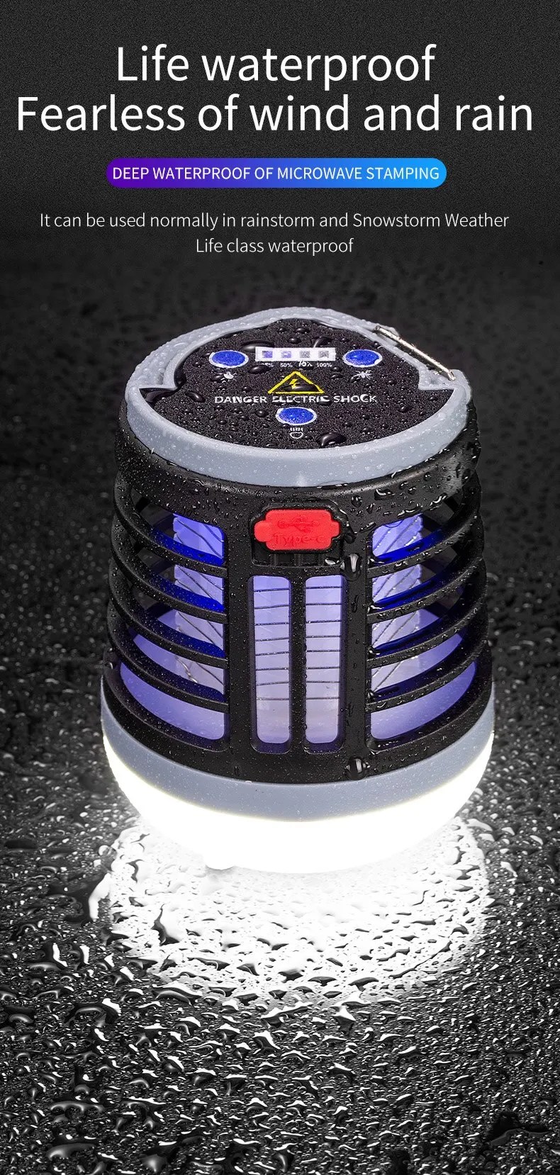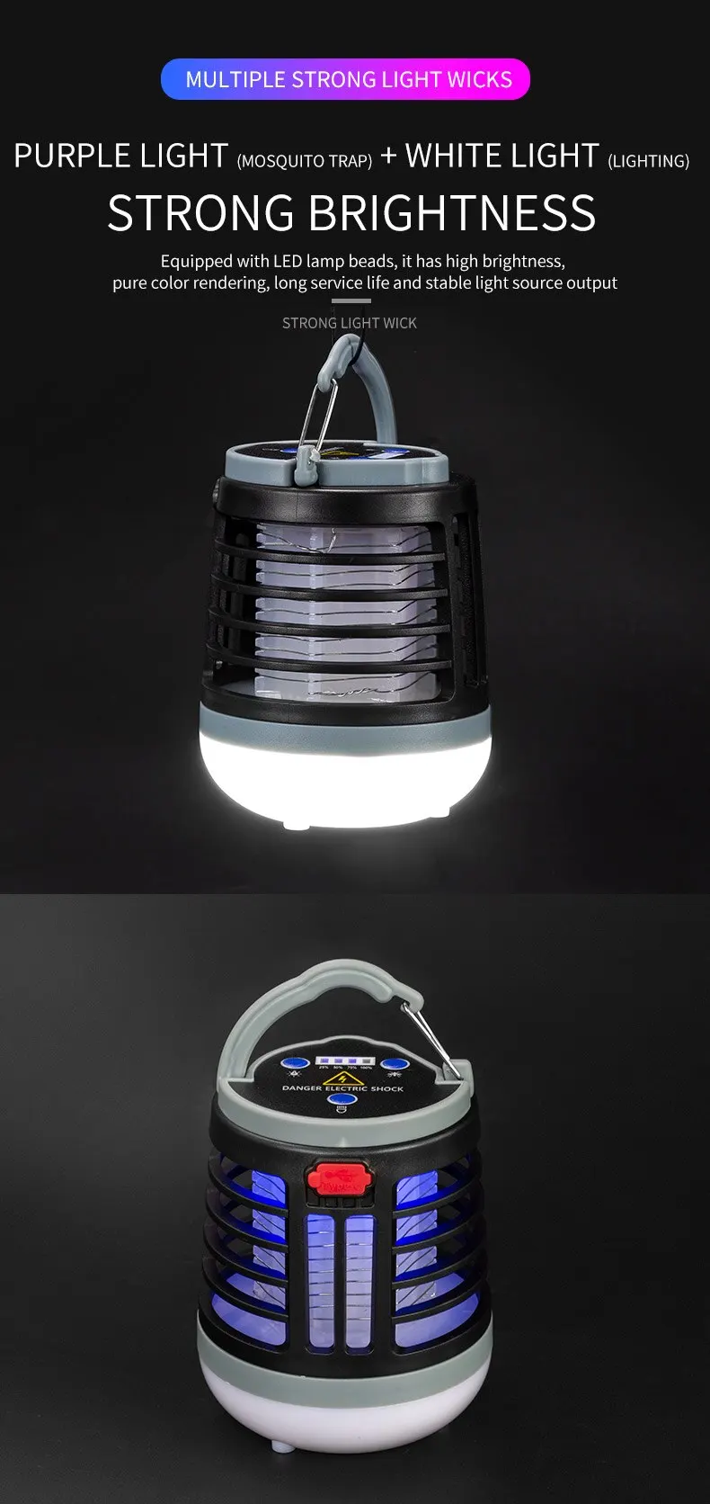 Function: violet light mosquito - luring, electric shock mosquito - killing