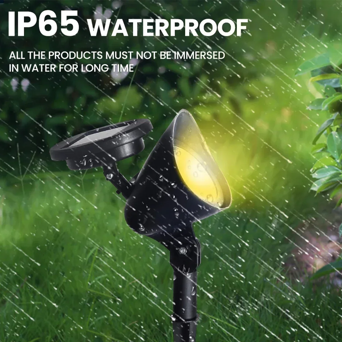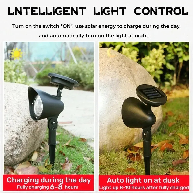 This solar-powered LED spotlight is perfect for illuminating gardens, pathways, lawns, trees, and courtyards. With IP65 waterproof protection, it withstands rain and outdoor conditions while providing bright, energy-efficient lighting. Ideal for enhancing landscape aesthetics and security, this spotlight is eco-friendly and easy to install, requiring no wiring or electricity.
