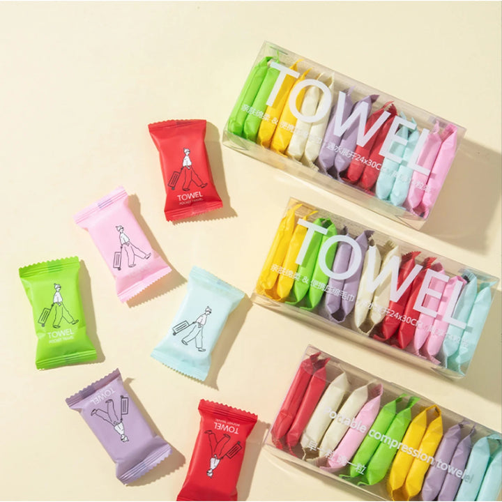 14pcs thickened compressed makeup remover towels. Alcohol-free and individually packaged in colorful wraps for convenient cleansing at home or on the go.
