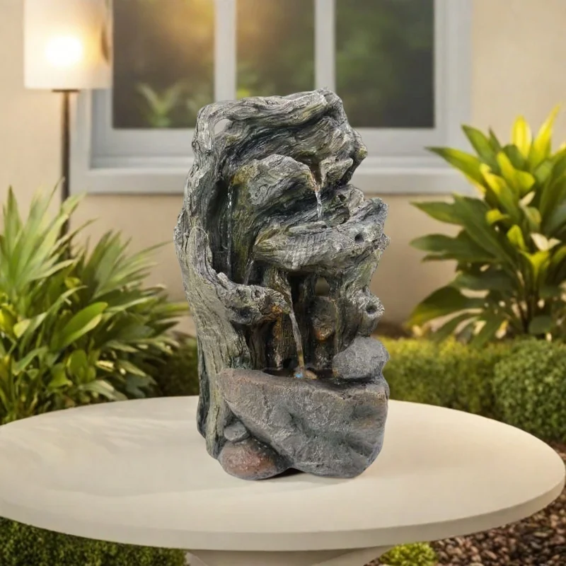 "LED Water Fountain – Durable Resin with Marble Effect, Small Indoor & Outdoor Home Decoration