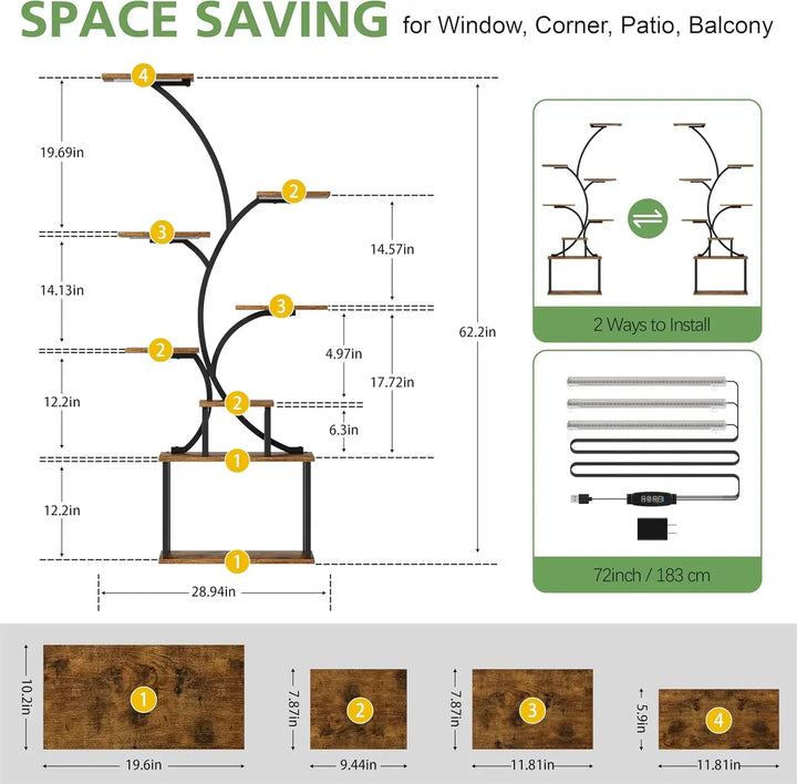 Boost your indoor garden with this 8-Tier Indoor Plant Stand, featuring a built-in grow light to help your plants thrive. The tall, durable metal frame offers ample space for multiple plants, making it perfect for living rooms, bedrooms, or office spaces. Ideal for plant enthusiasts looking to combine style and functionality, this stand ensures healthy growth and elegant display for all your indoor greenery.