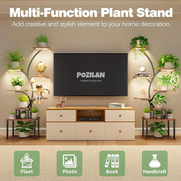 8-Tier Indoor Plant Stand with Grow Light – Metal Plant Shelf