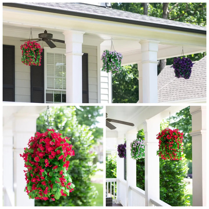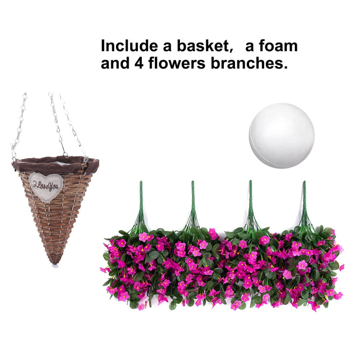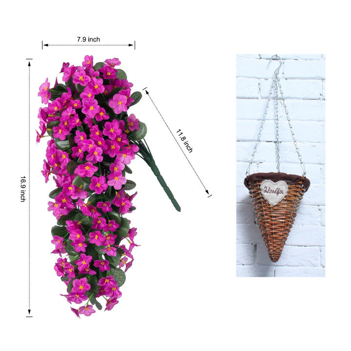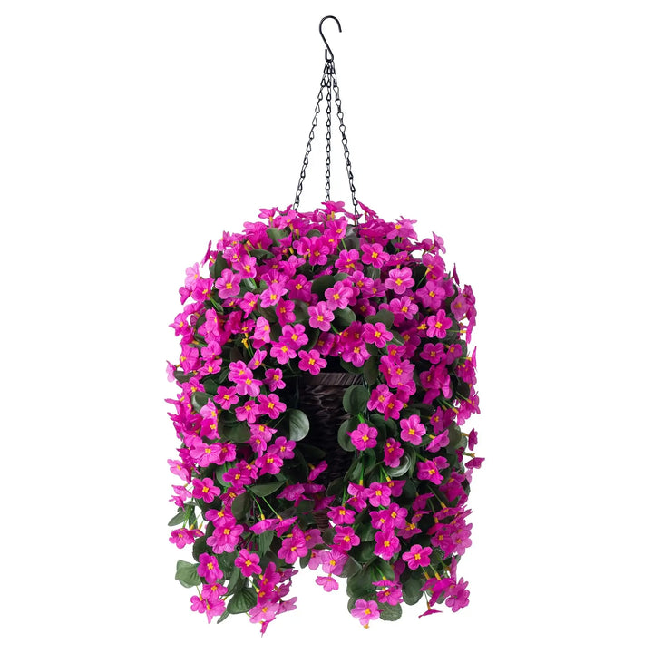 Enhance your home or garden with this realistic faux hanging flower basket, featuring silk fuchsia trailing orchid blooms that cascade beautifully for a vibrant spring look. Crafted from UV-resistant materials, this hanging plant stays bright and fresh-looking even under sunlight—perfect for outdoor patios, balconies, gardens, or indoor spaces. Enjoy the beauty of orchids year-round with no watering or maintenance required.