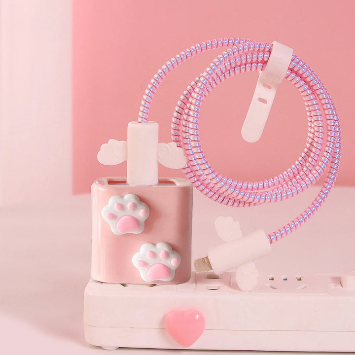 Protect your charging cables in style with this Cherry Flower Cable Protector. Compatible with iPhone 11–15 Pro Max, Xiaomi, Samsung, and 18W/20W chargers, it prevents fraying and damage while keeping your wires neat and tangle-free. Cute, durable, and easy to use — perfect for home, office, or travel.