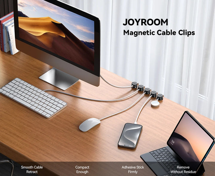 Joyroom cable organizer, magnetic cable clips, cord management, adhesive wire holder, under desk cable holder, USB cable organizer, charging cord tidy, office cable management, home cable organizer