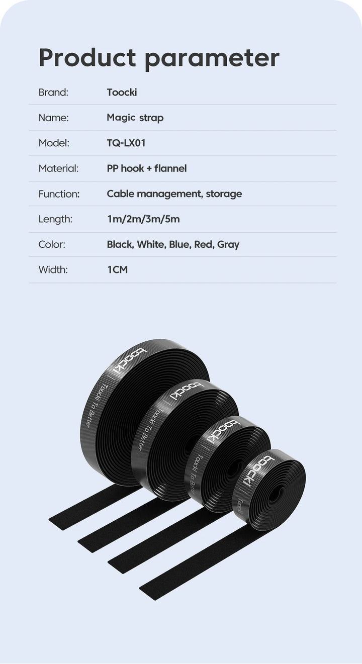 Manage your cables neatly with the Toocki 3M/5M Cable Organizer Winder. Ideal for iPhone, Xiaomi, Poco, and other charging cords, this under-desk wire management solution can be cut to size for a perfect fit. Durable, flexible, and easy to install — keeps your workspace or home clutter-free.