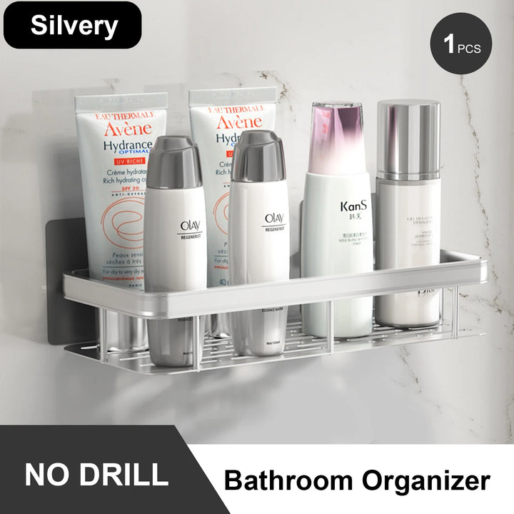Durable stainless steel bathroom storage rack with strong suction cups for easy installation. Anti-rust and space-saving design ideal for holding shampoo, shower gel, and bathroom essentials. Perfect for modern, organized bathrooms.