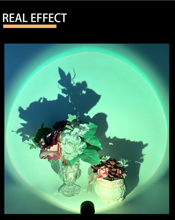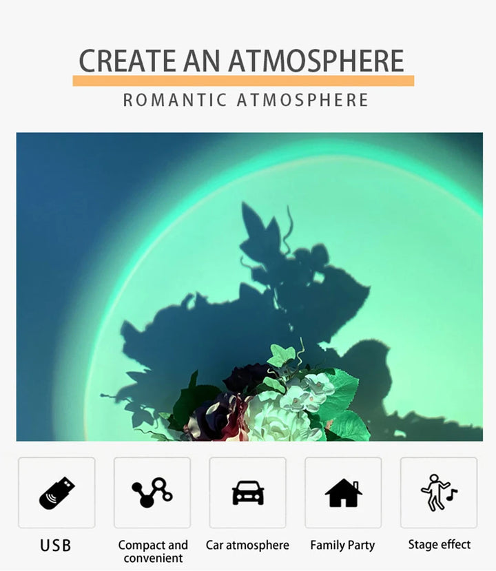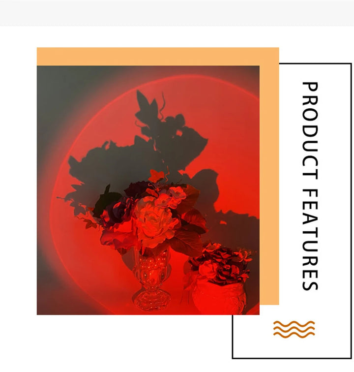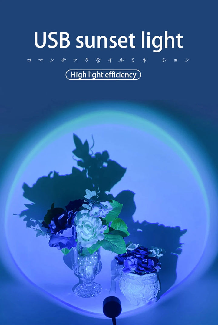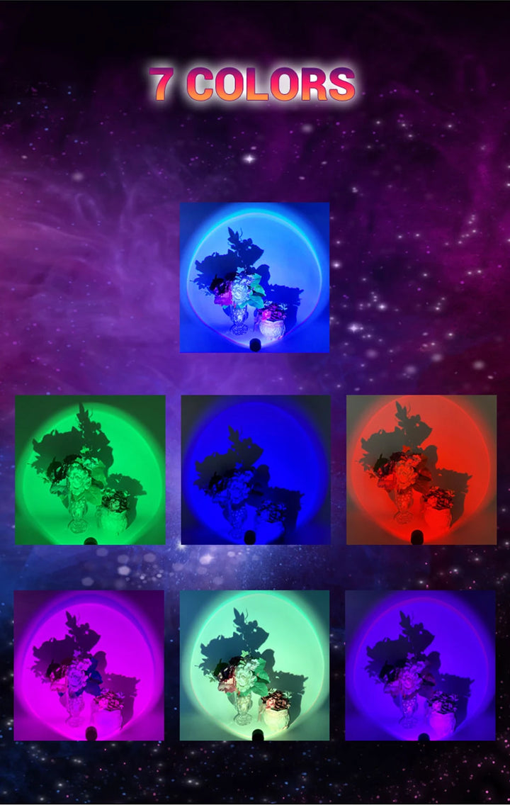 Create a warm and colorful ambiance with this LED Sunset Lamp. USB-powered and perfect for bedrooms, living rooms, parties, or photography backdrops, it projects beautiful sunset hues to enhance any space. Ideal as a mood light or decorative night lamp.