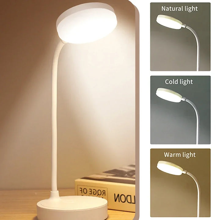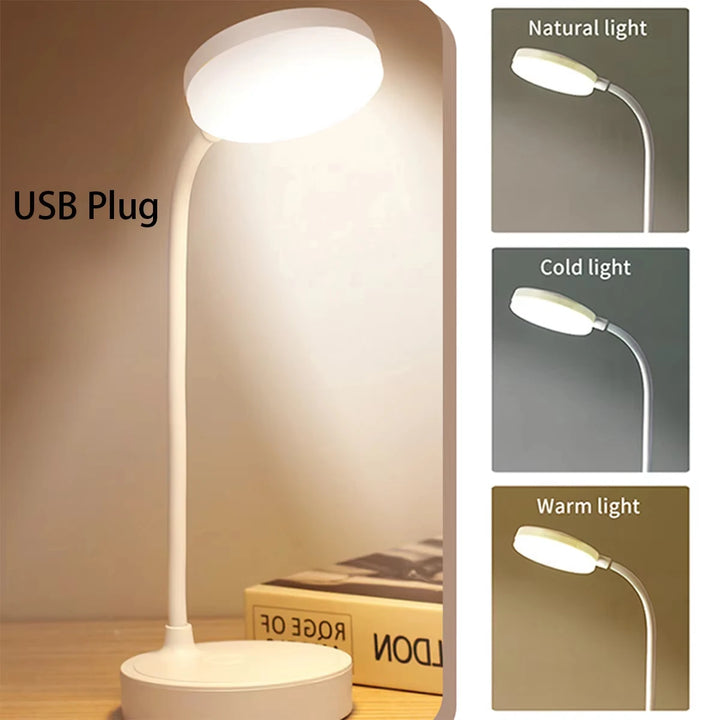 Brighten your workspace or bedside with this Portable LED Desk Lamp. Featuring USB plug-in, 3-color stepless dimming, and eye-protection technology, it provides adjustable, comfortable lighting for bedrooms, study desks, or office tables. Sleek, modern, and portable for everyday use