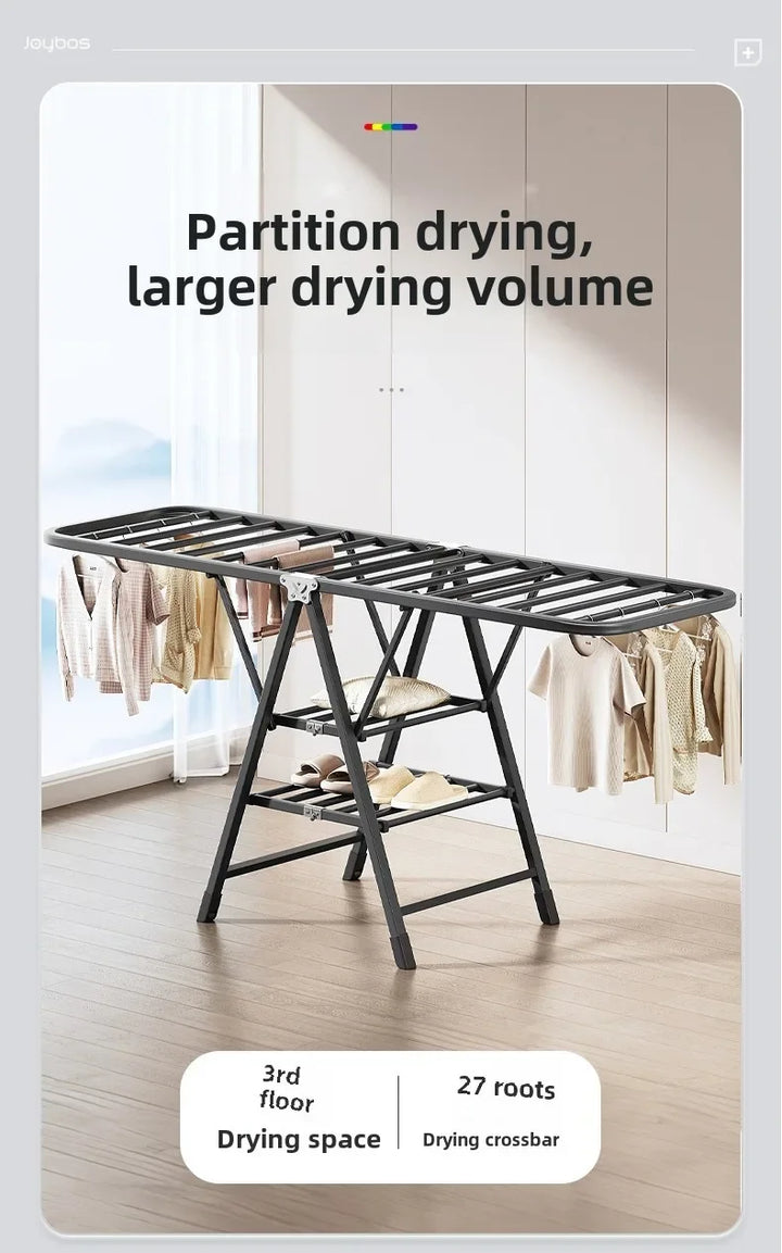 The Airfoil Folding Floor-to-Ceiling Drying Rack offers a modern, space-saving design for efficient drying at home. Perfect for indoor or outdoor use, it features a no-punch installation, making it ideal for balconies, bedrooms, and laundry rooms. Sturdy and versatile, it easily supports clothes, quilts, and towels, combining functionality with sleek style.