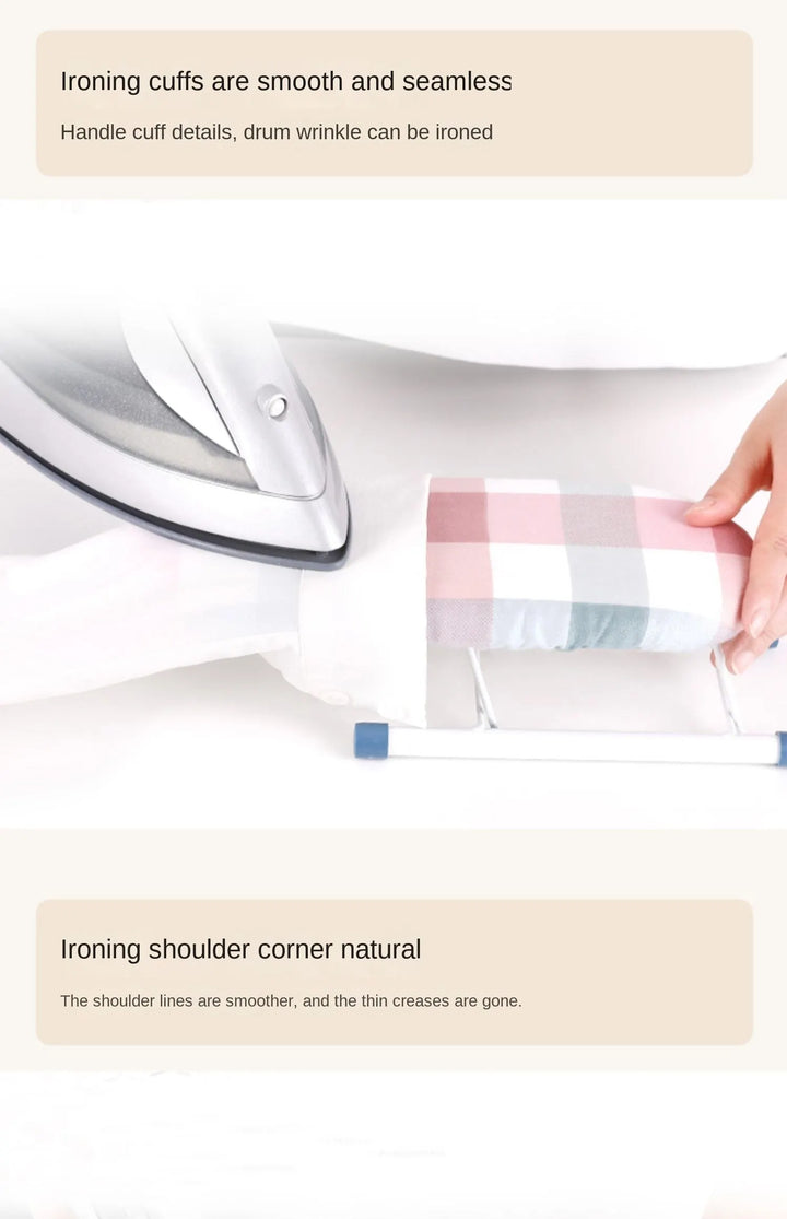 The Portable Mini Ironing Board is designed for ironing clothes, sleeves, and shirts with ease. Its small, lightweight design makes it perfect for storage, travel, or use in tight spaces, providing a convenient solution for quick and efficient ironing anywhere.