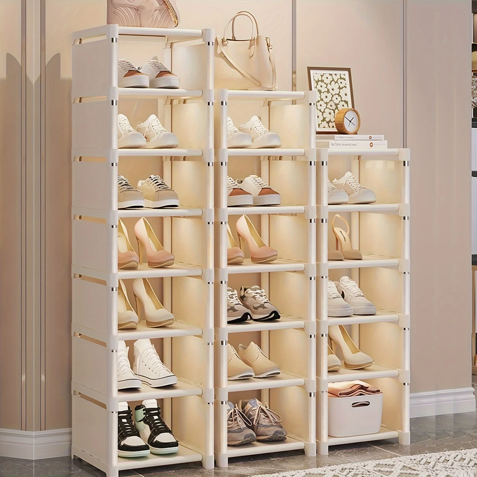Organize your footwear with this Metal Frame Multi-Tier Shoe Rack. Featuring durable fabric shelves and a sturdy metal frame, it’s perfect for storing sneakers, sandals, and everyday shoes. Its space-saving design fits entryways, closets, or bedrooms, while easy assembly makes setup quick and hassle-free. Ideal for keeping your home tidy and organized, especially during holidays or seasonal changes.