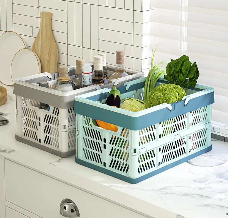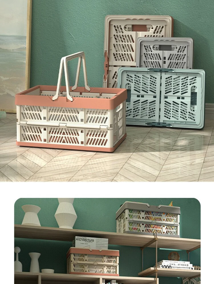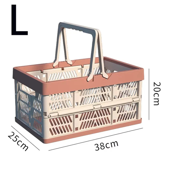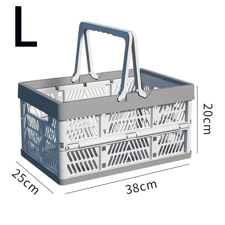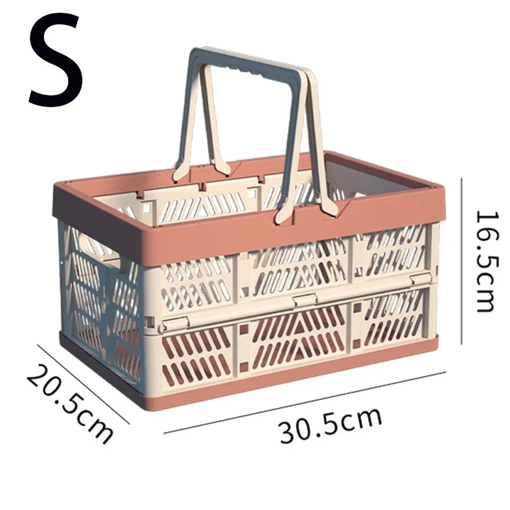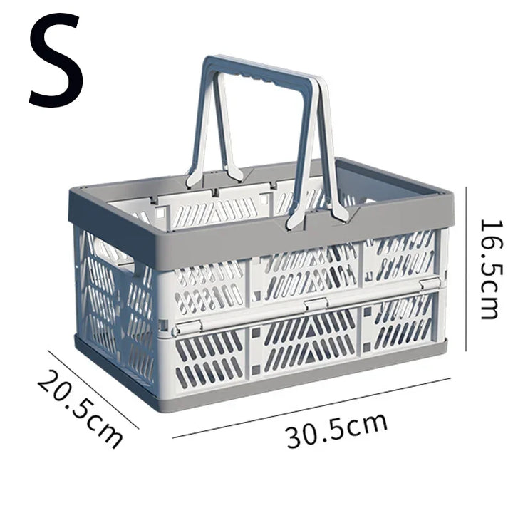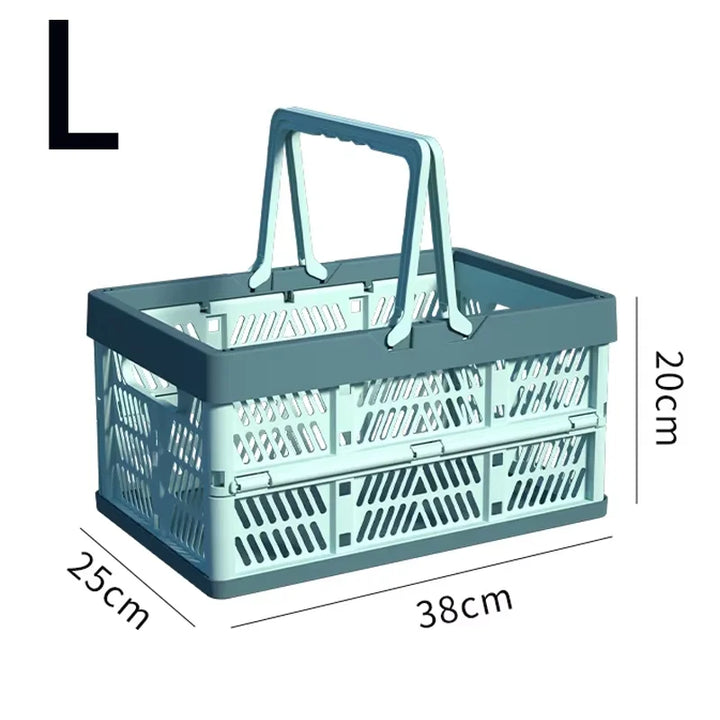 A large, foldable storage basket with a sturdy handle, perfect for organizing kitchens, living rooms, and desktops. Durable and space-saving, ideal for home organization.