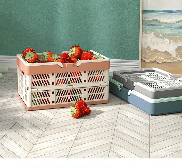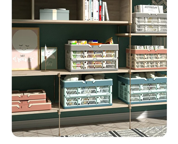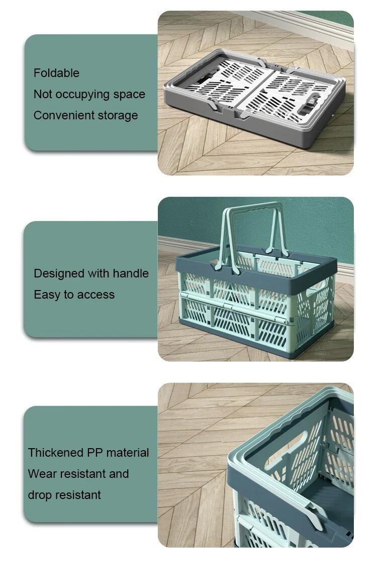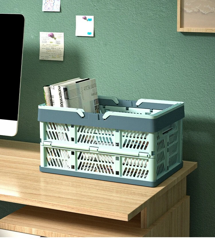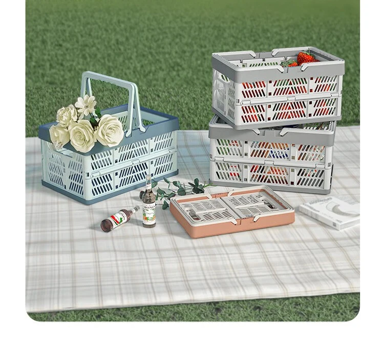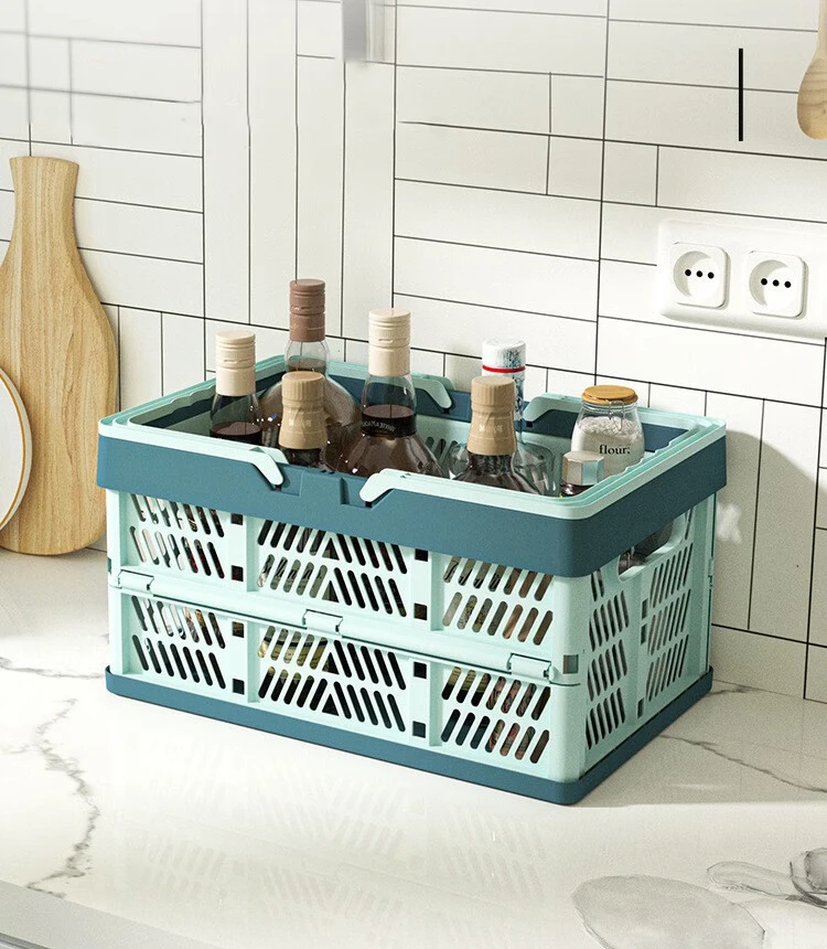 A large, foldable storage basket with a sturdy handle, perfect for organizing kitchens, living rooms, and desktops. Durable and space-saving, ideal for home organization.