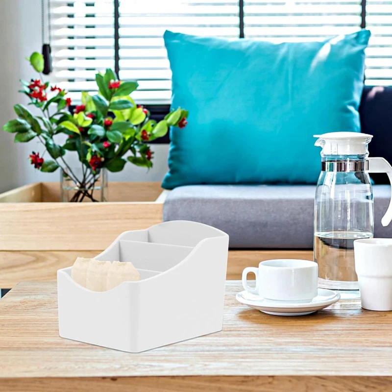 A versatile storage box designed to organize sugar packets, tea bags, coffee sachets, and remote controls. Perfect for coffee stations, kitchens, or countertops to keep essentials neatly arranged and easily accessible.