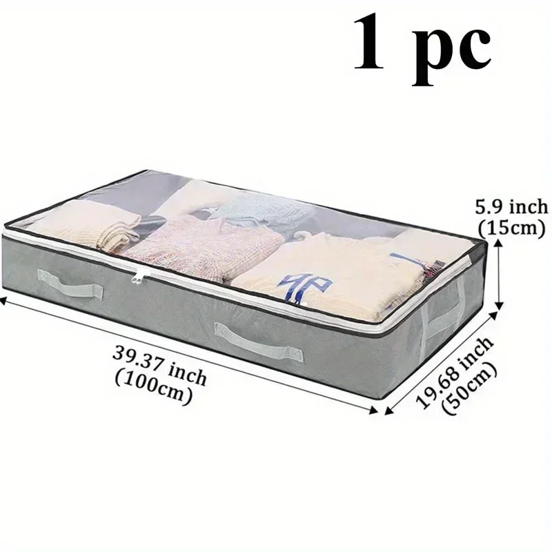 Durable underbed storage box with reinforced handles, available in 1/2/3pcs sets. Perfect for keeping comforters, blankets, pillows, and toys dust-free and neatly organized in the bedroom.