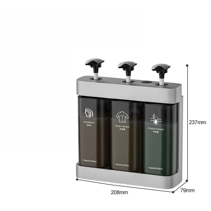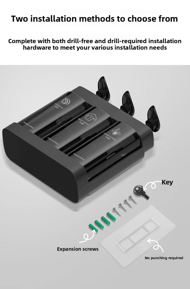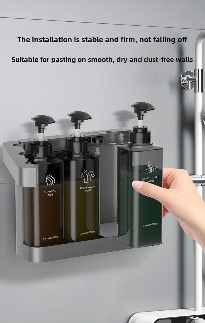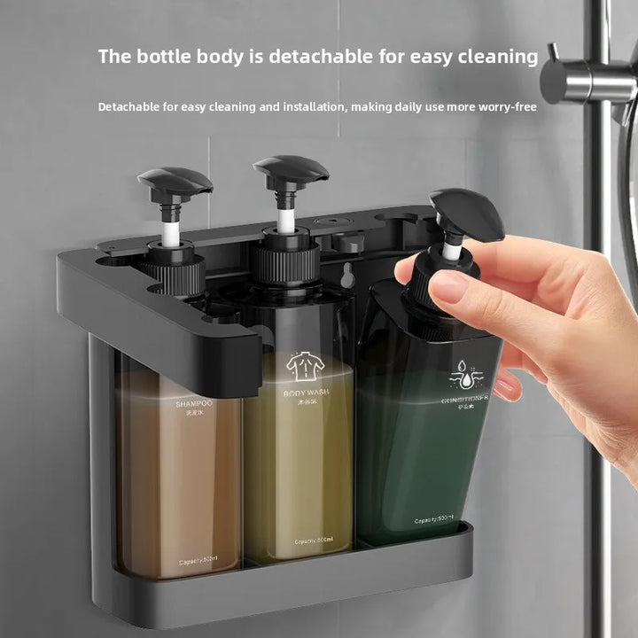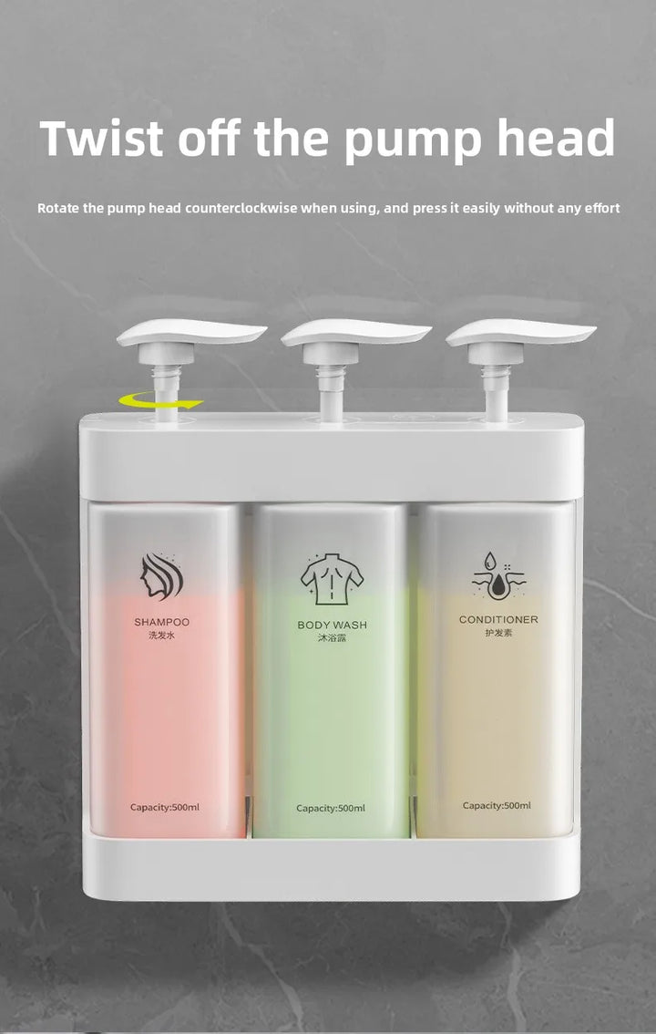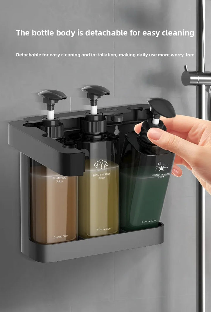Keep your bathroom neat and modern with this wall-mounted liquid dispensing bottle. Designed with a non-punching installation, it easily mounts without drilling. Perfect for soap, shampoo, body wash, or lotion, the manual press pump ensures smooth and controlled dispensing. Durable, refillable, and space-saving—ideal for bathrooms, kitchens, hotels, and gyms.