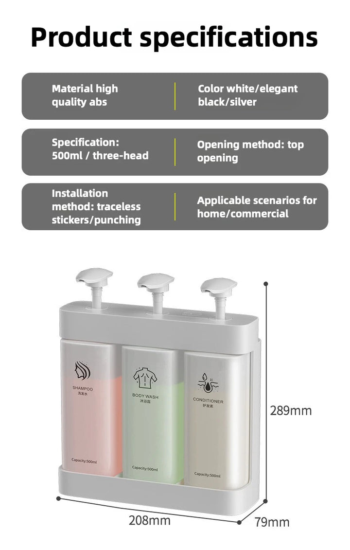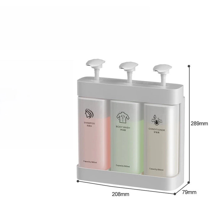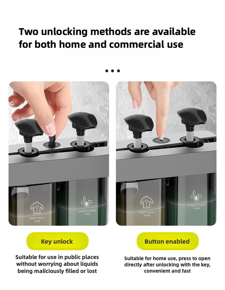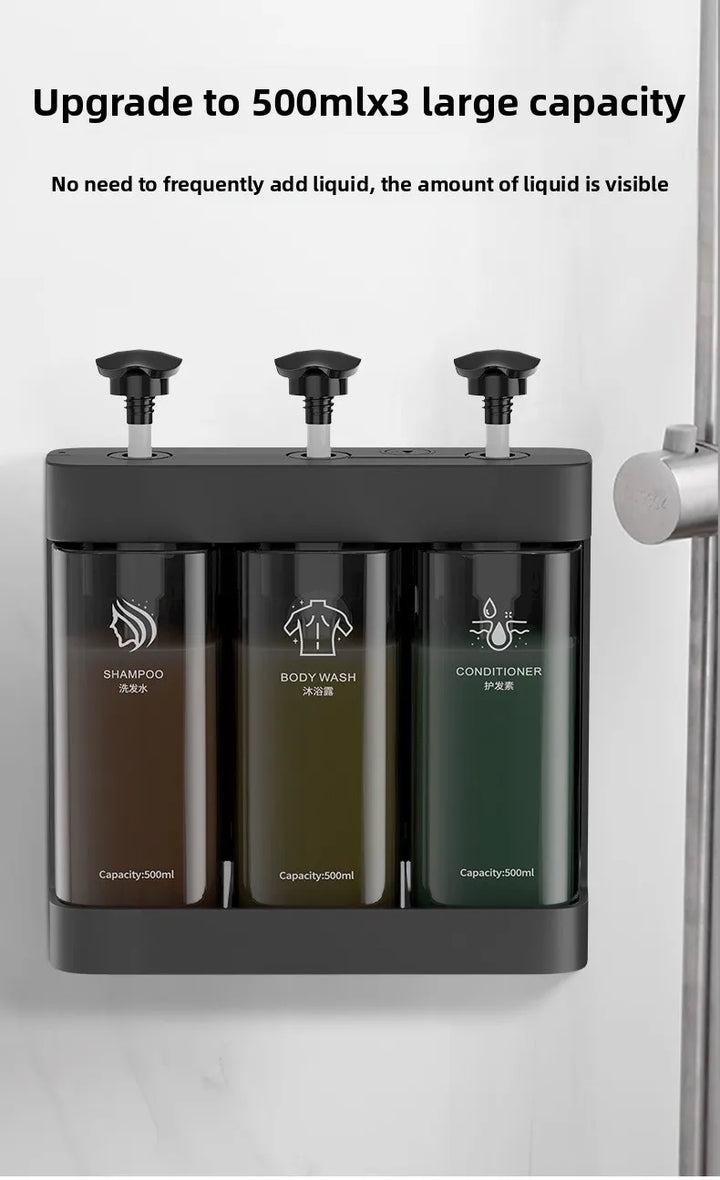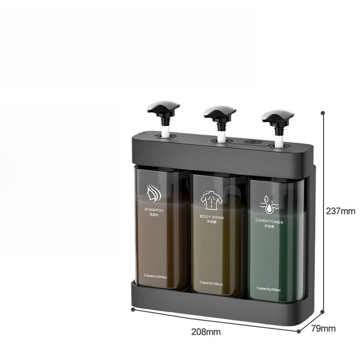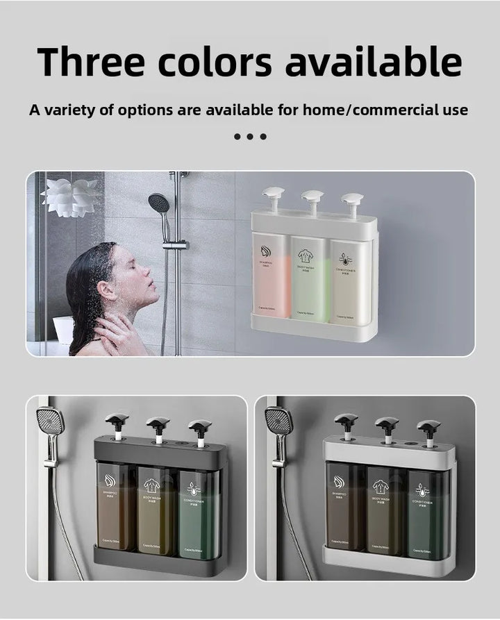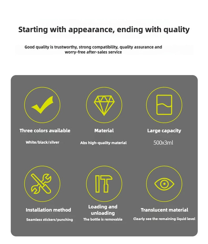 Keep your bathroom neat and modern with this wall-mounted liquid dispensing bottle. Designed with a non-punching installation, it easily mounts without drilling. Perfect for soap, shampoo, body wash, or lotion, the manual press pump ensures smooth and controlled dispensing. Durable, refillable, and space-saving—ideal for bathrooms, kitchens, hotels, and gyms.