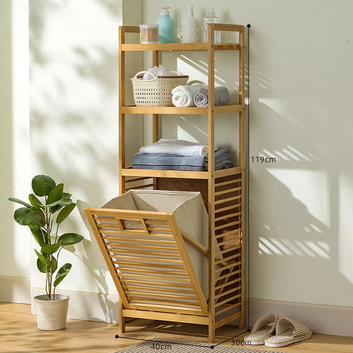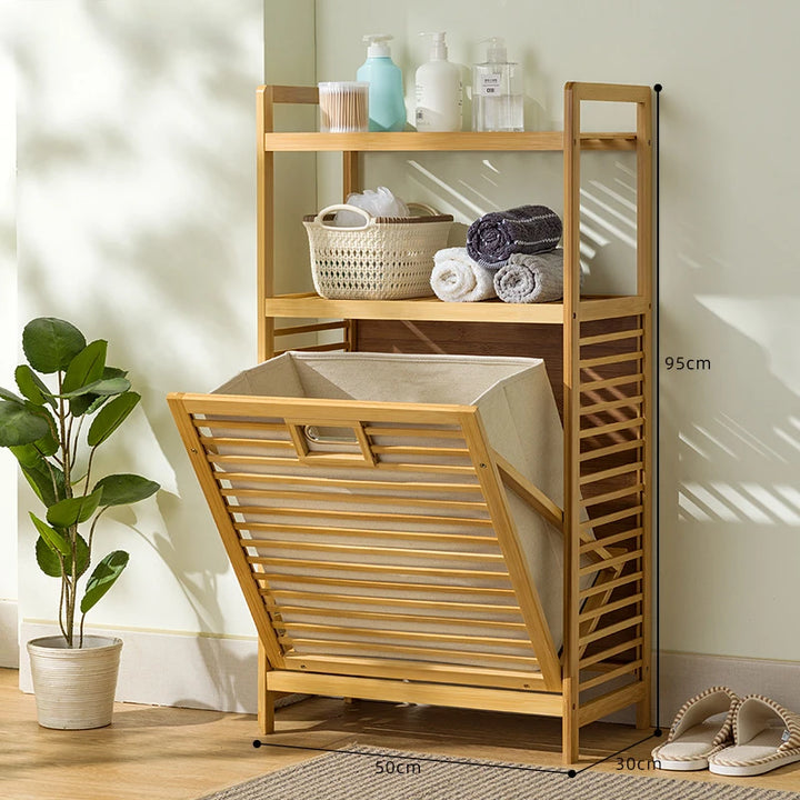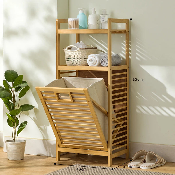 Bamboo Laundry Hamper with Tilt-Out Basket & Shelf