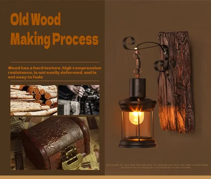 Add a rustic charm to your space with this Antique Industrial Wood Wall Sconce Light. Designed with a mix of iron metal art and natural wood, it brings warmth and character to bars, lofts, corridors, or living spaces. Perfect for creating a vintage, industrial-inspired atmosphere in any room.