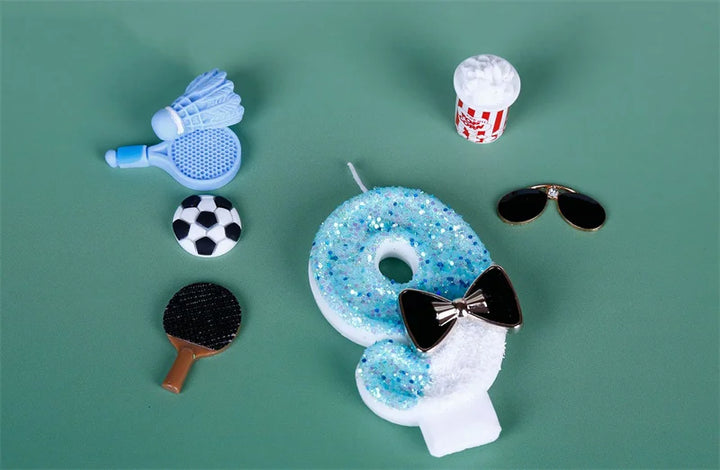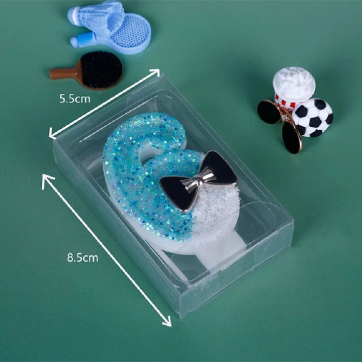 Celebrate milestones with this blue number birthday candle featuring decorative white stitching. Perfect for birthdays, weddings, or baby’s first year celebrations. Ideal for cakes and party décor.
