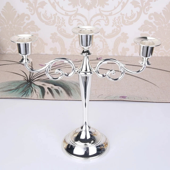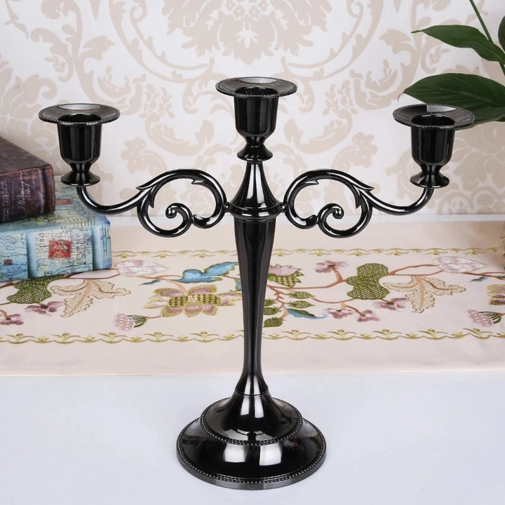 Retro 3-arm metal candelabra with gold and bronze plating. Perfect for weddings, candlelight dinners, hotels, or home décor, adding elegance and vintage charm.