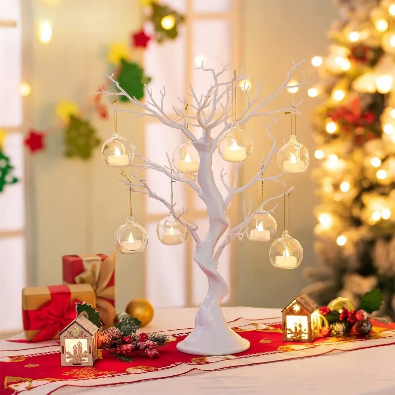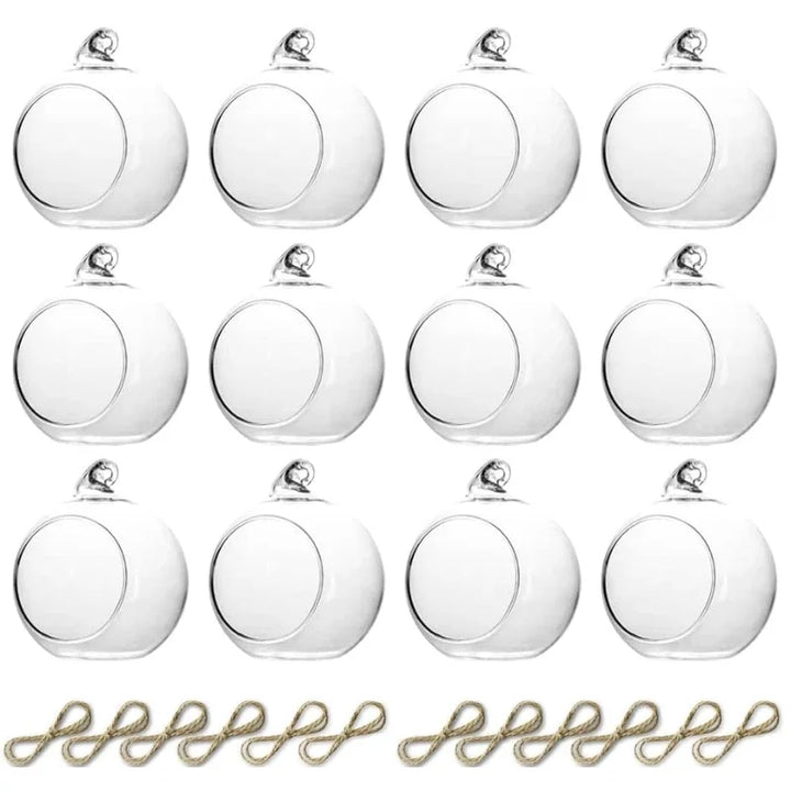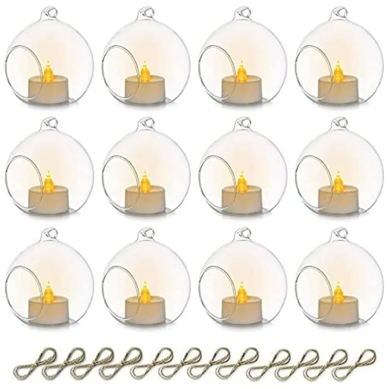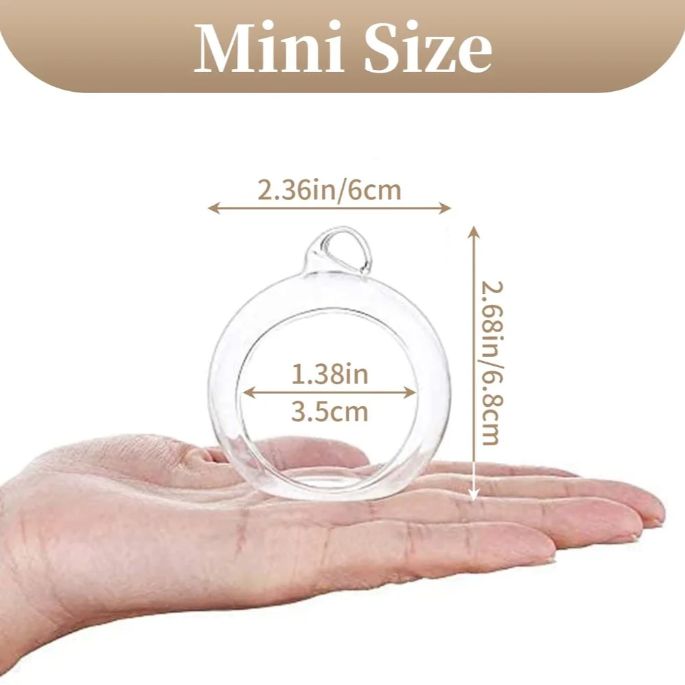 Elegant hanging glass globe tealight holders (6/8cm). Perfect for weddings, parties, gardens, or indoor décor. Can be used with candles or as decorative air plant orbs.
