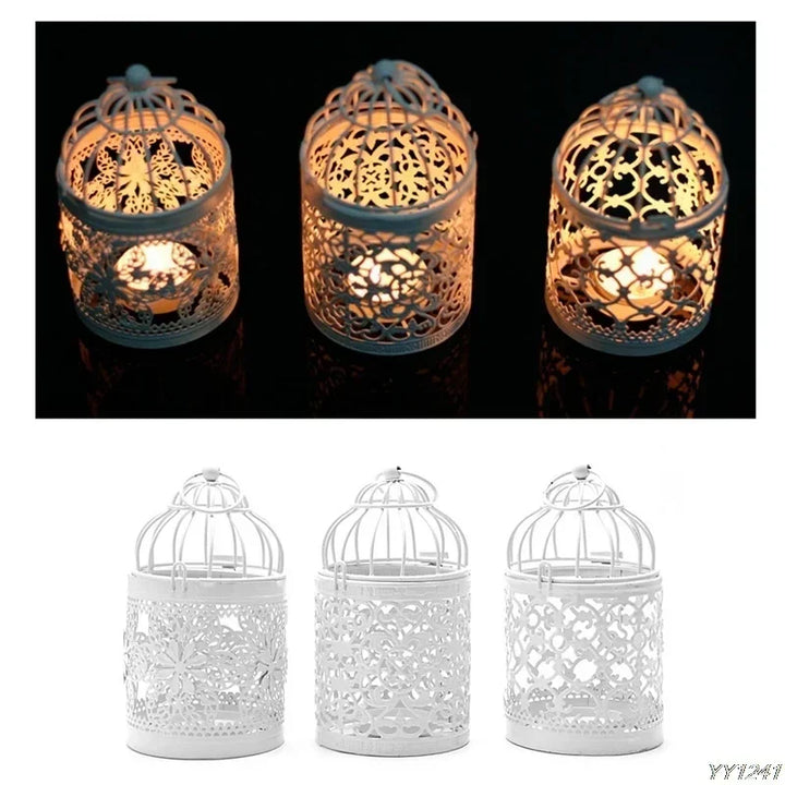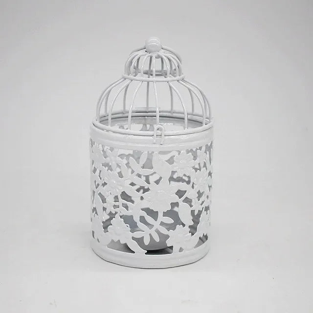Creative hollow hanging birdcage candle holder. Vintage design perfect for bridal décor, home decoration, or as an elegant tabletop candlestick.