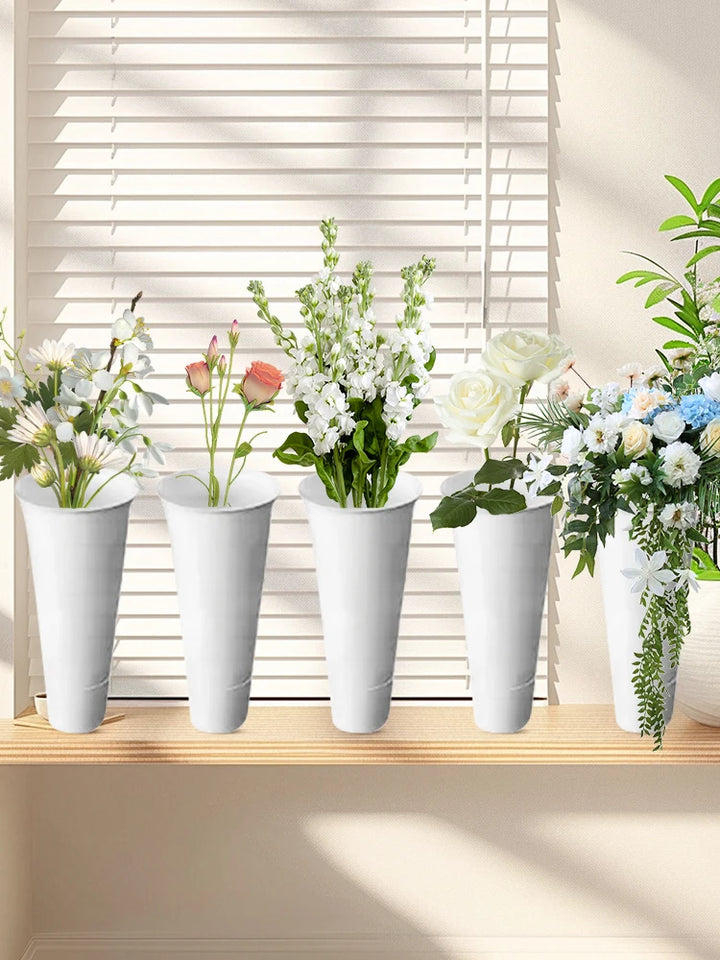 Elevate your floral arrangements with this set of 12 white flower display buckets. Made from durable, lightweight plastic, each pot offers a large capacity, making it perfect for fresh flowers, artificial bouquets, or lush plants. Ideal for home patios, balconies, gardens, or event displays, these versatile planters combine functionality and modern style — perfect for creating an elegant floral showcase indoors or outdoors.
