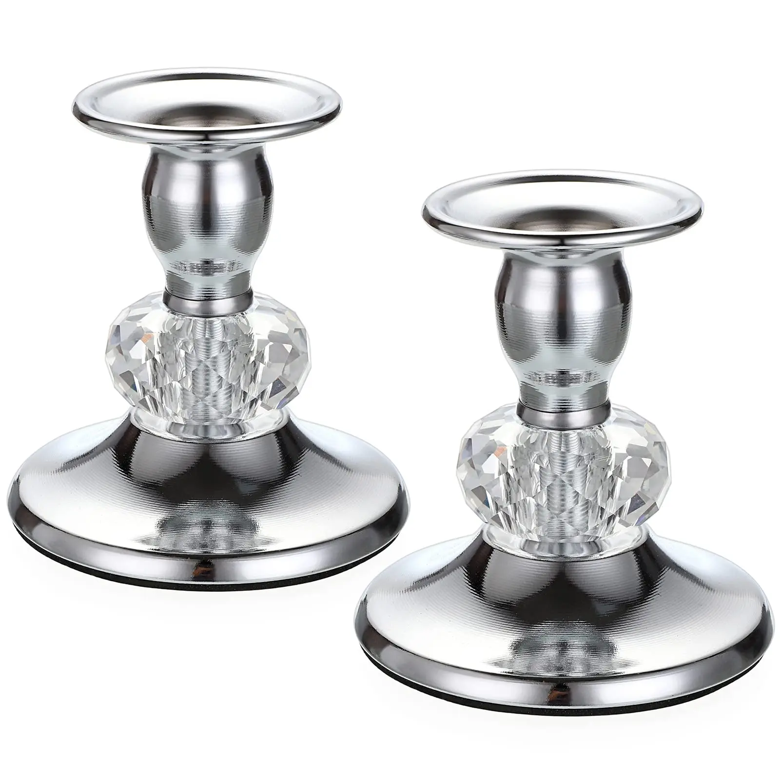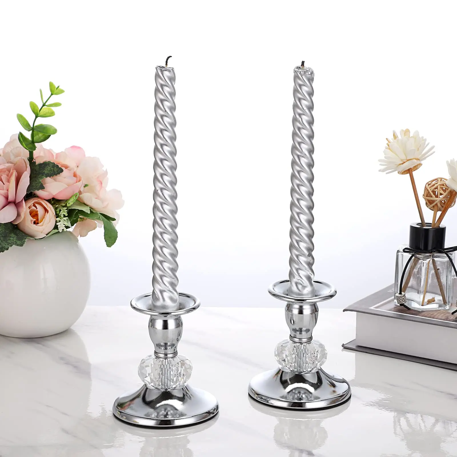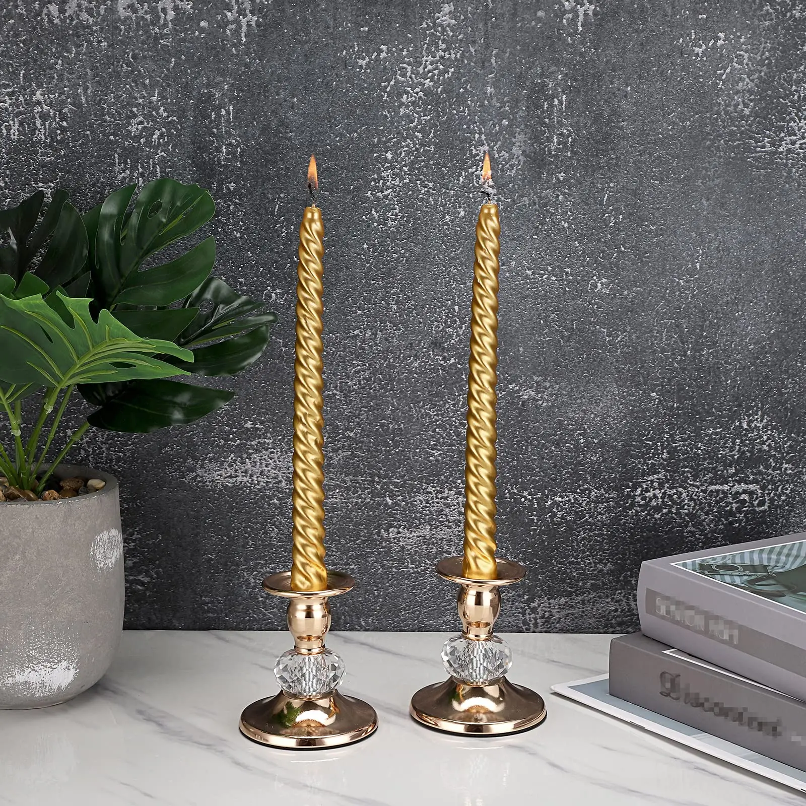 Set of 2 gold metal taper candlestick holders with vintage brass and crystal design. Elegant and timeless, perfect for weddings, home décor, or sophisticated table settings.