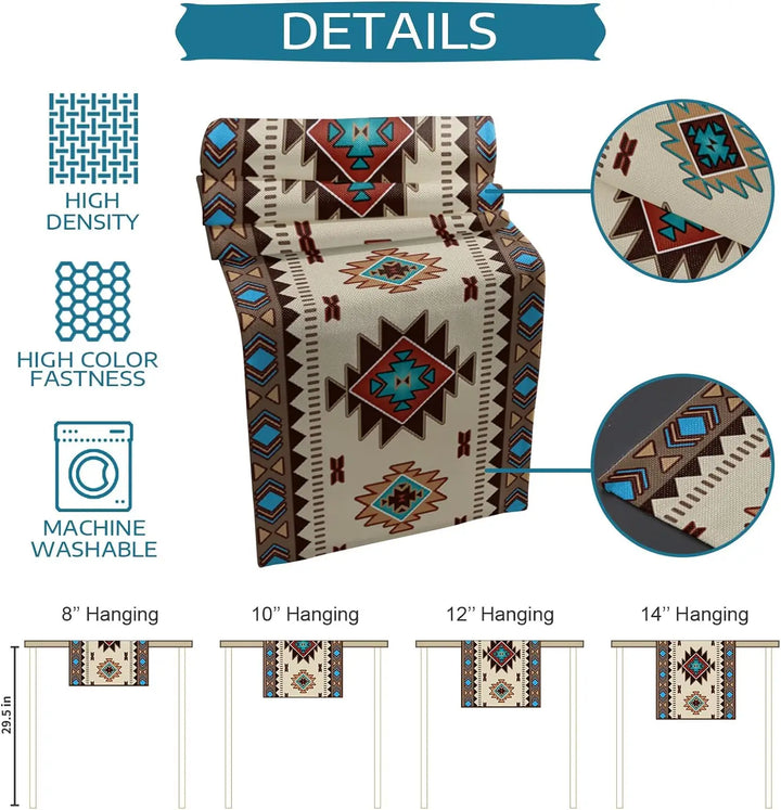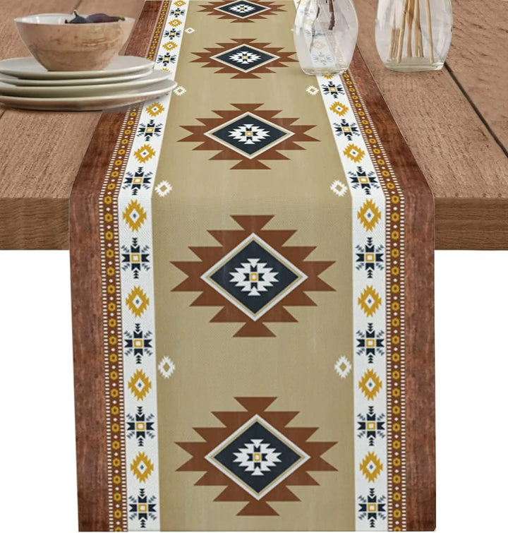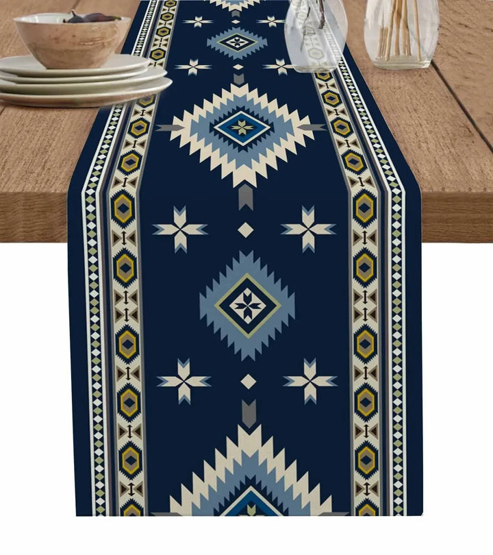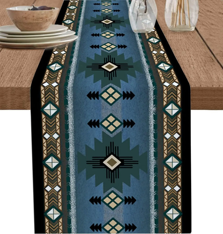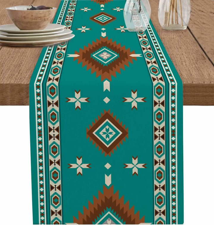 Add a touch of boho charm to your space with this American Indian Style Linen Table Runner.