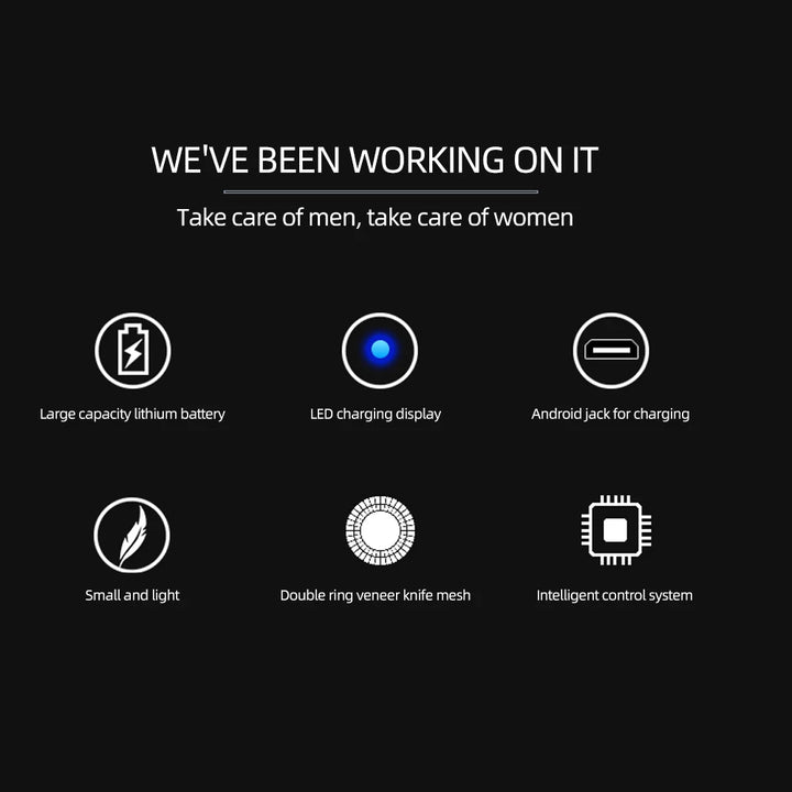 Compact rechargeable electric shaver for men and women. Ideal for facial and body hair, perfect for travel, car use, and everyday grooming.