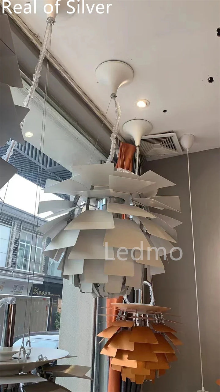 Elevate your home décor with this High-Quality Artichoke Pendant Light Chandelier. Featuring a unique layered design, it provides elegant illumination while closely resembling the original artichoke-inspired style. Perfect for living rooms, dining rooms, or bedrooms, adding a sophisticated and modern touch to any interior space.