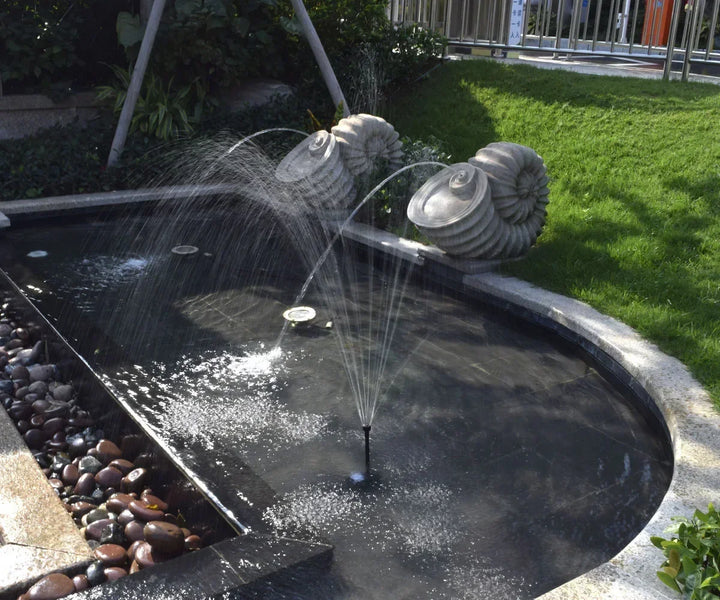 High-power AISITIN 10W solar landscape fountain with super strong water spraying height. Perfect as a garden flower sprinkler and outdoor decorative water feature.