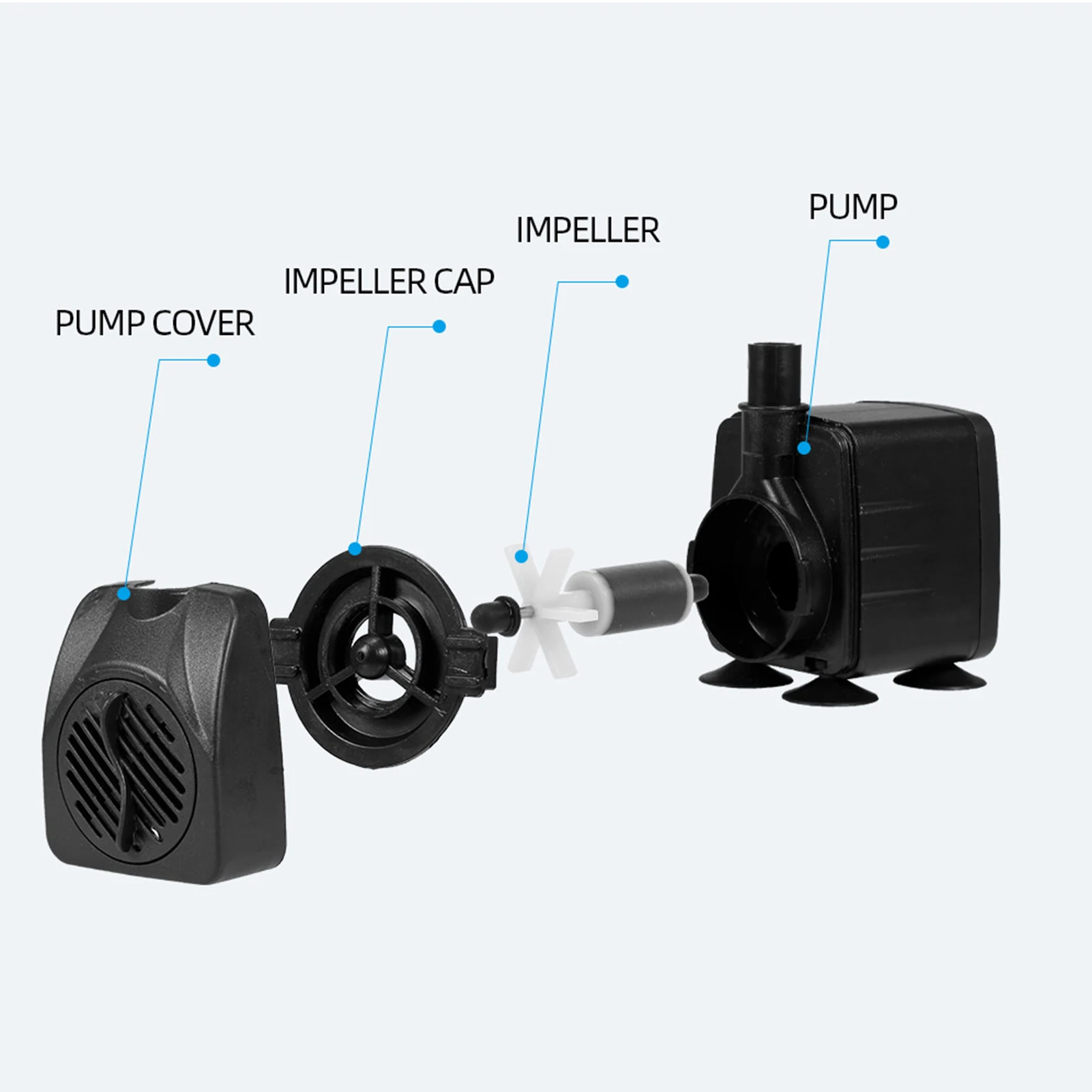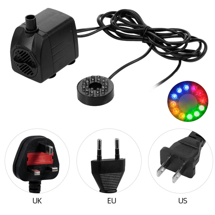 Ultra-quiet Water Pump IP68 Waterproof Submersible Fountain Pump for Aquarium Fish Tank Bird Bath Pond Fountain with LED Lights
