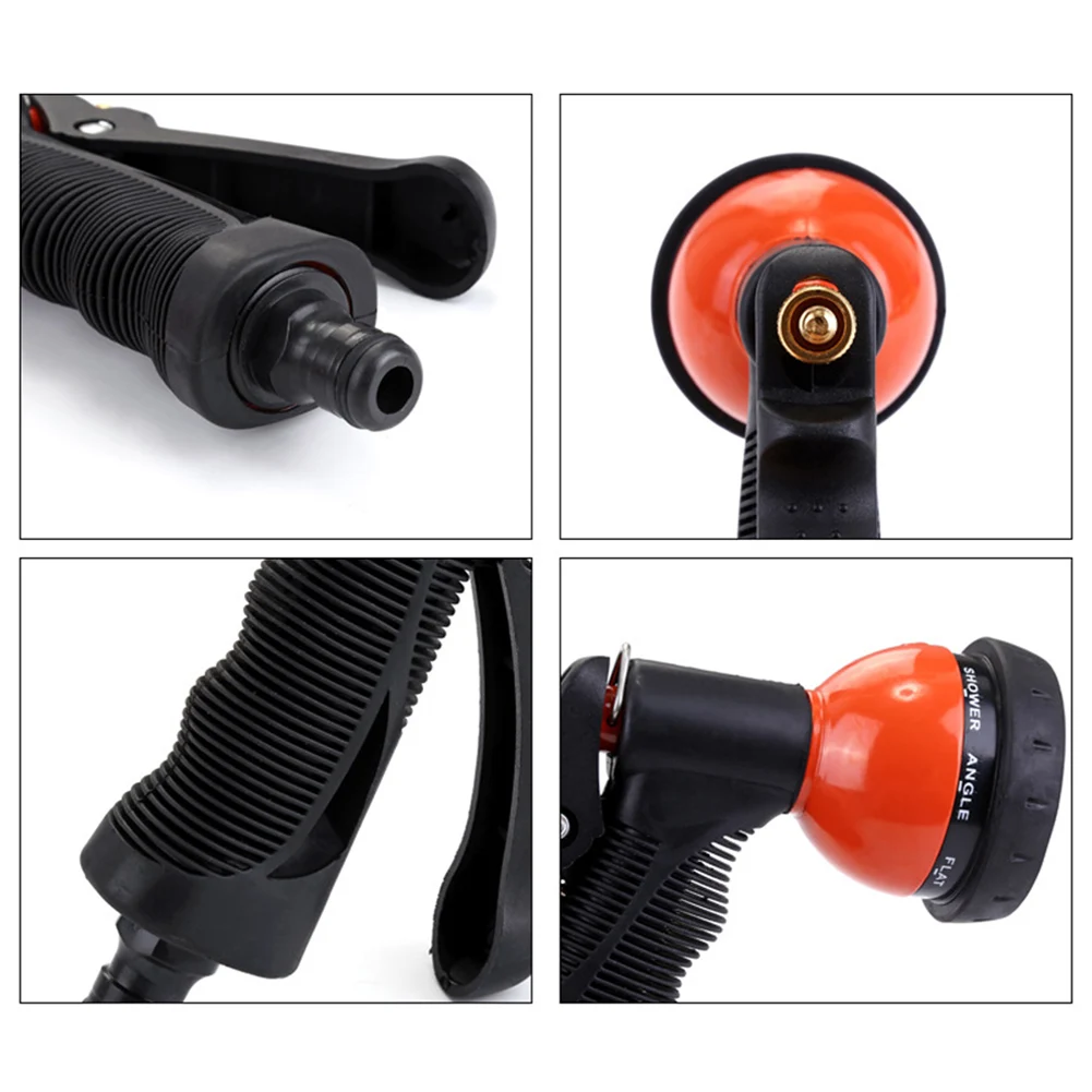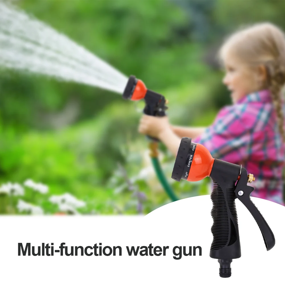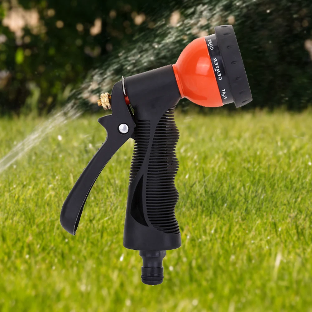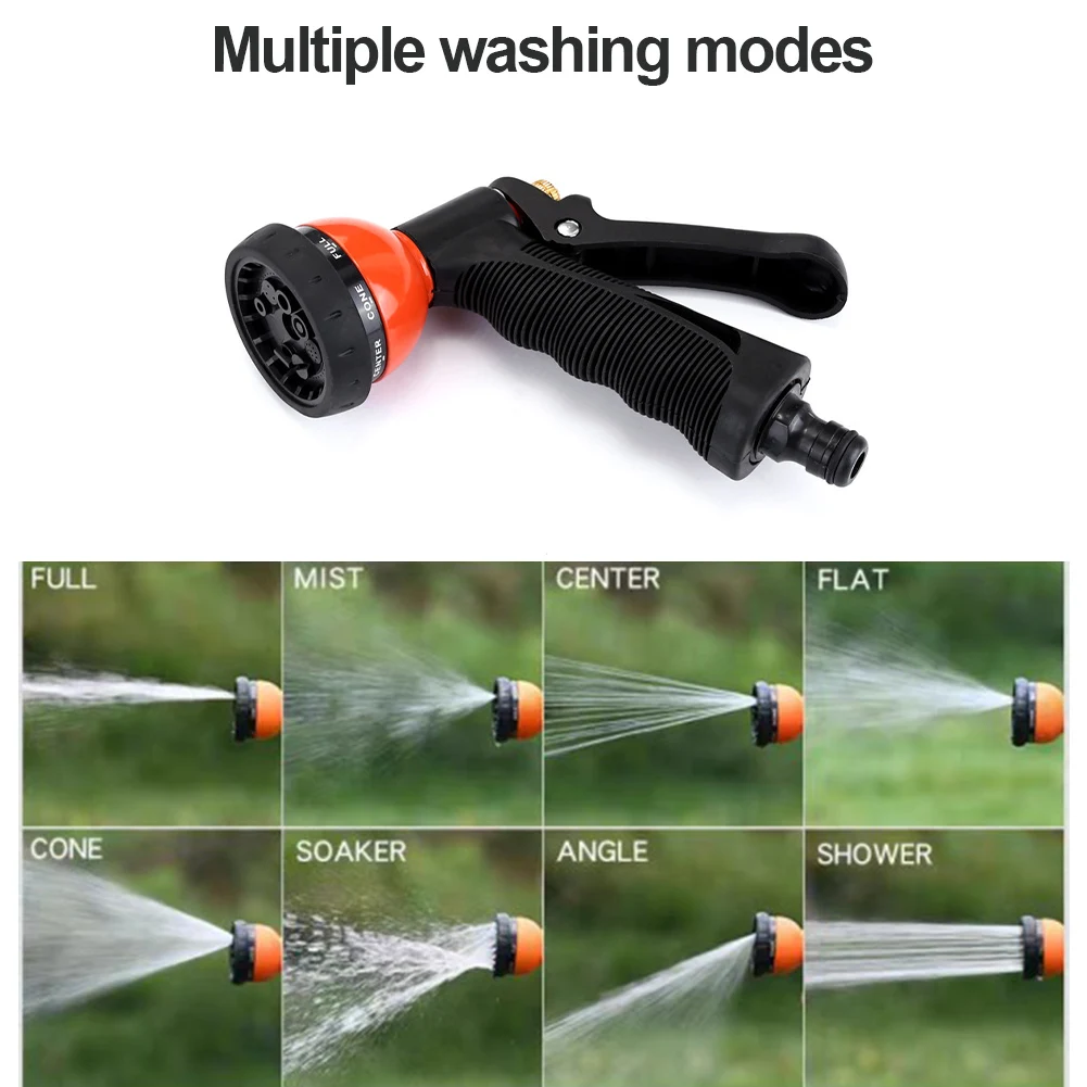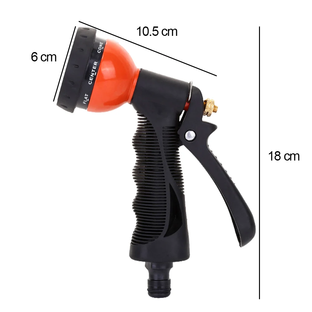 High-pressure garden water gun with 8 spray modes. Ideal for car washing, yard watering, and irrigation. Durable and versatile nozzle for all your outdoor spraying needs