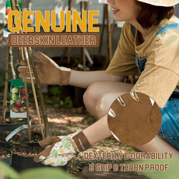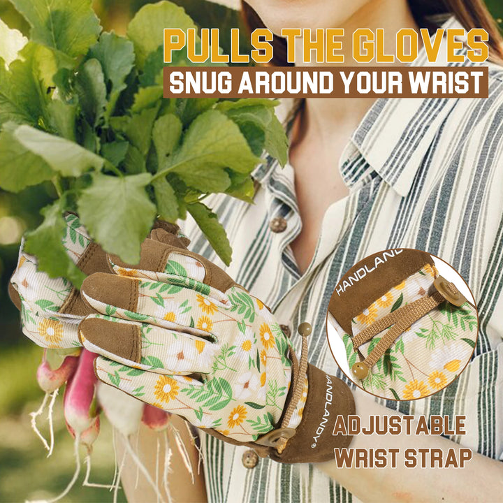 HANDLANDY Gardening Gloves for Women – Breathable Leather Gloves, Perfect Gift for Gardeners