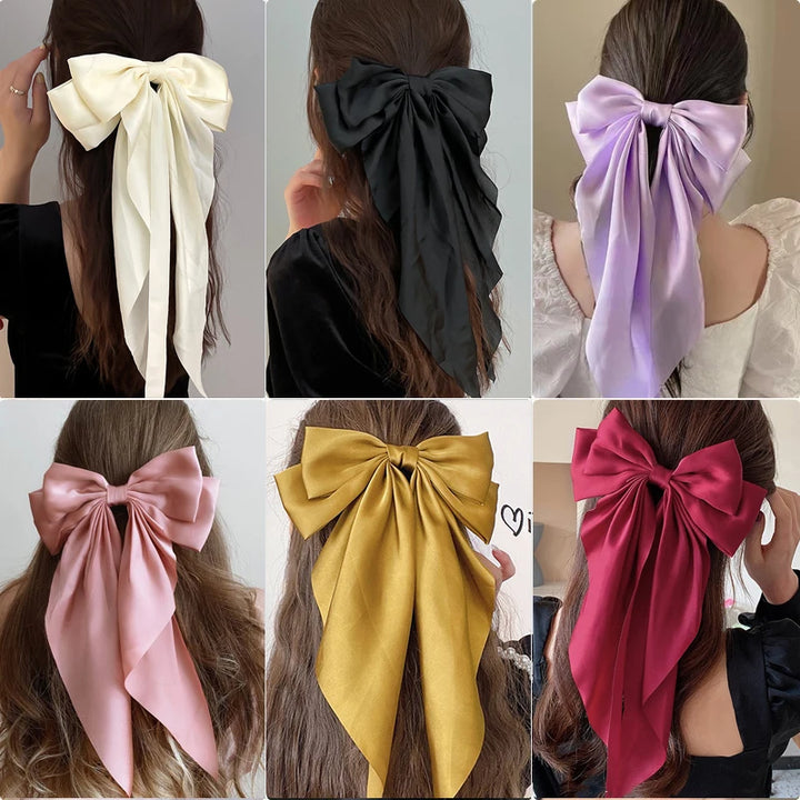 Elegant bow ribbon hair clip made from soft satin with a spring barrette design. Perfect for women and girls to style ponytails, headbands, or everyday hairstyles, making it a chic accessory and a lovely gift.