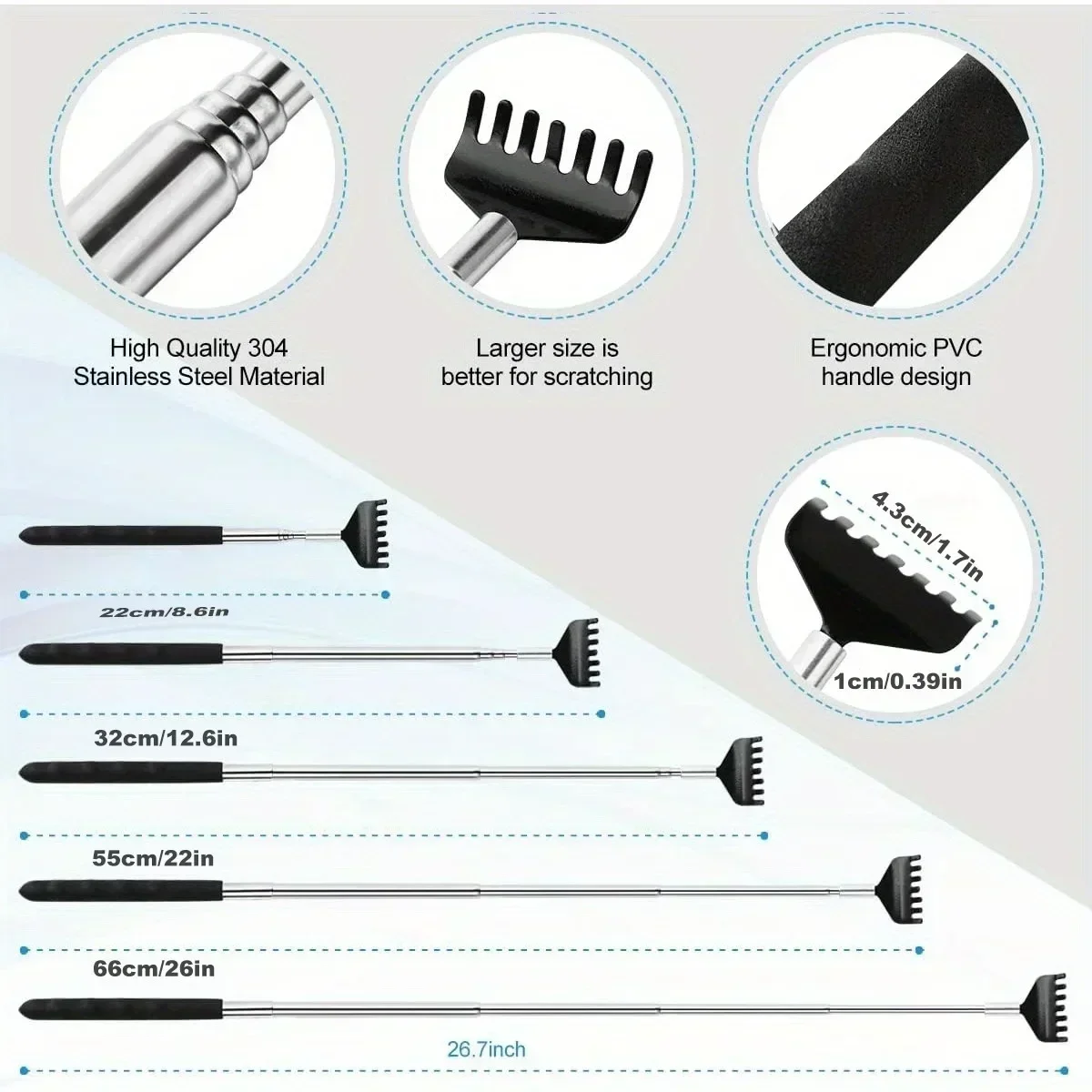 Extendable metal back scratcher with comfortable handles for easy use. Portable and perfect for relieving itchy spots, promoting relaxation, and gifting for holidays or birthdays.