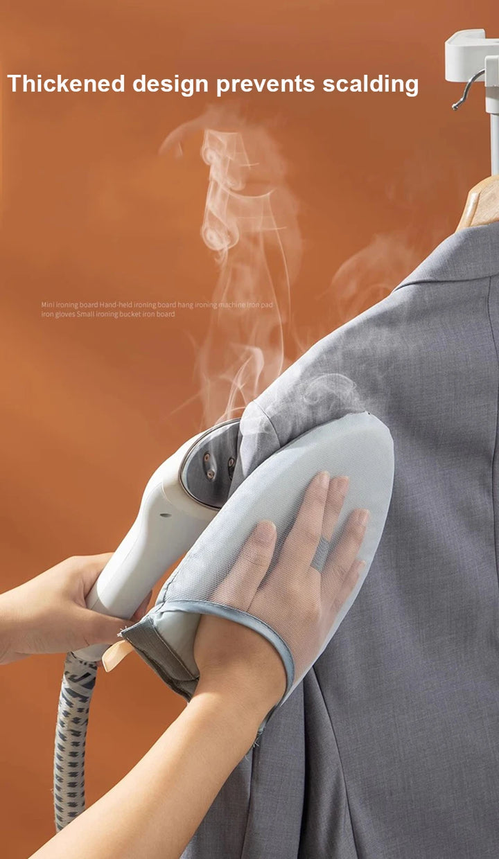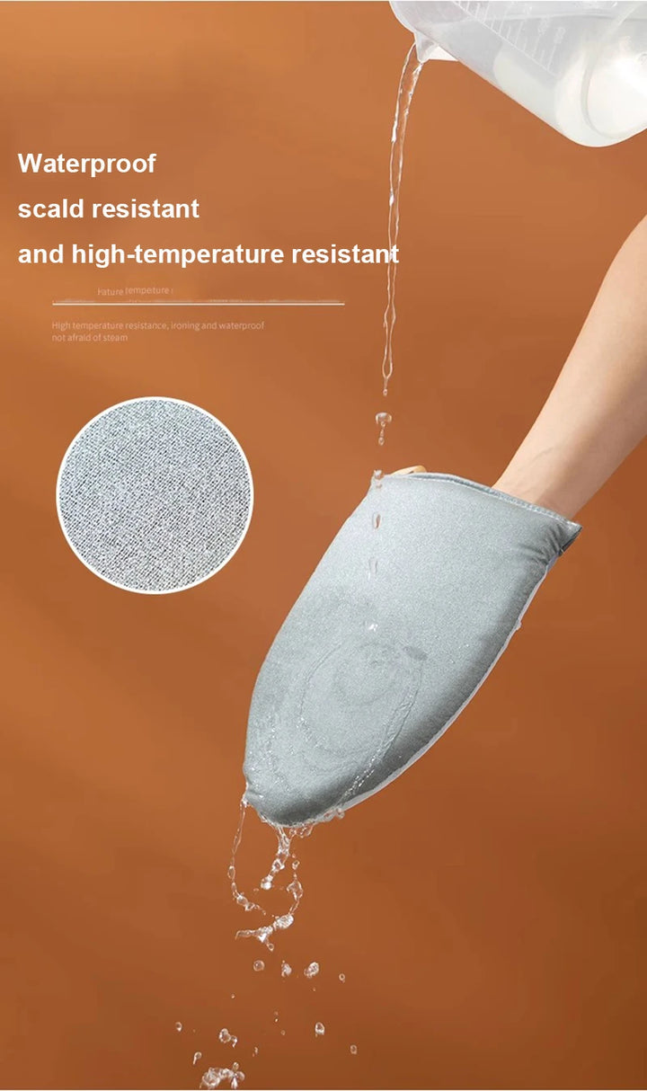 Compact washable mini ironing board with heat-resistant cover and anti-scald gloves. Durable and stain-resistant, ideal for clothing stores or home use. Perfect for quick touch-ups and professional wrinkle-free results.