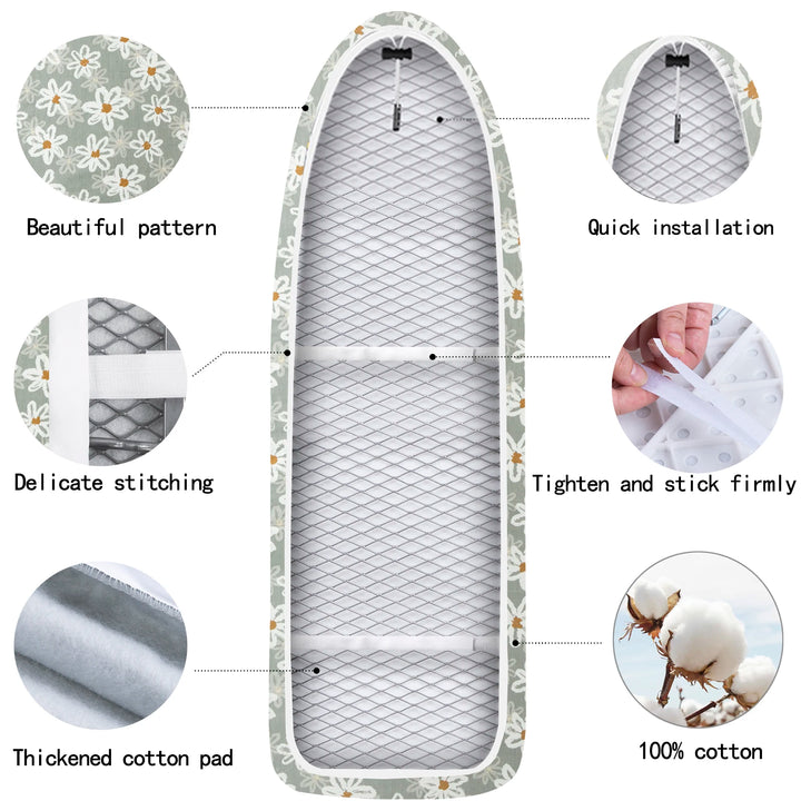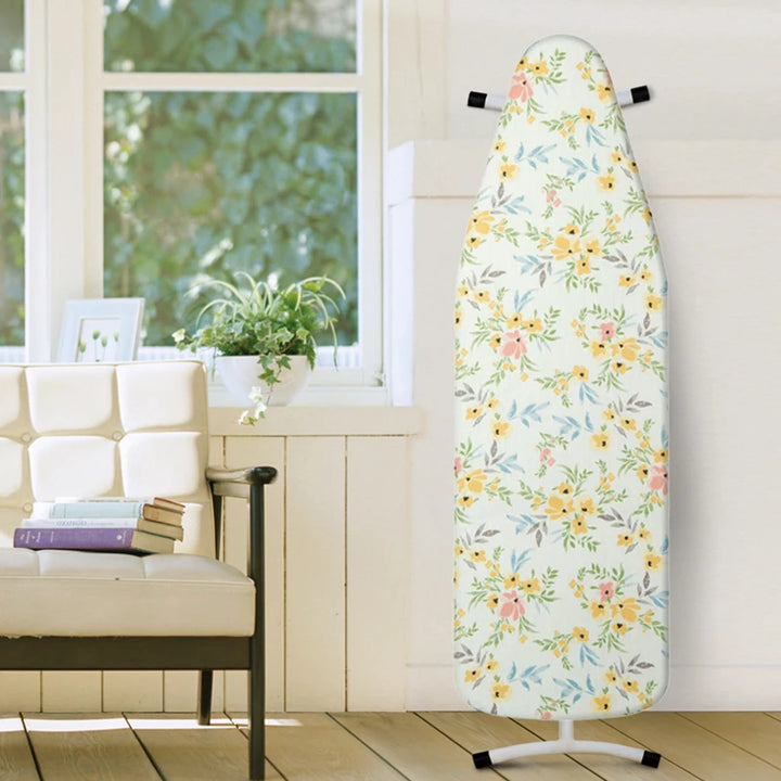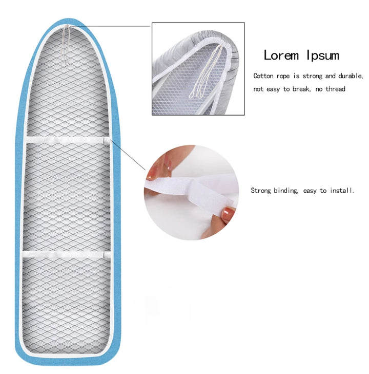 Premium 140x50cm heavy-duty ironing board cover with elastic edges for a secure fit. Heat-reflective and durable material ensures smooth ironing and faster wrinkle removal. Ideal replacement cover for home ironing and laundry tools.