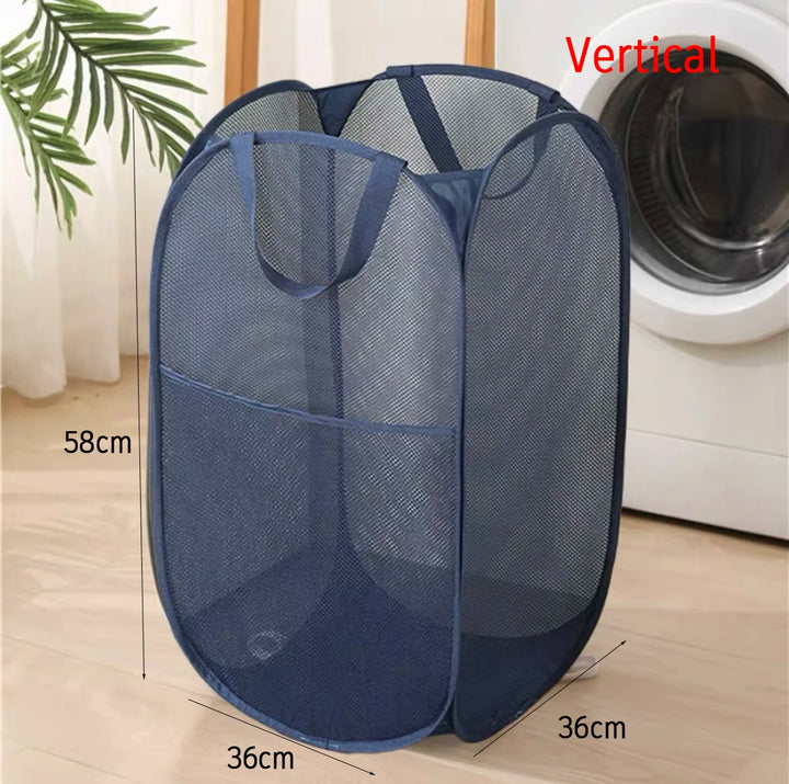 Keep your home, bathroom, or travel space organized with this versatile mesh storage basket. Perfect for laundry, shower essentials, or storing dirty clothes, this foldable bag is lightweight, breathable, and portable. Its durable mesh design allows for ventilation, preventing odors and mildew. Ideal for home use, business trips, or vacations, it conveniently folds flat for easy storage when not in use. No partitions make it perfect for all types of clothing or laundry items.