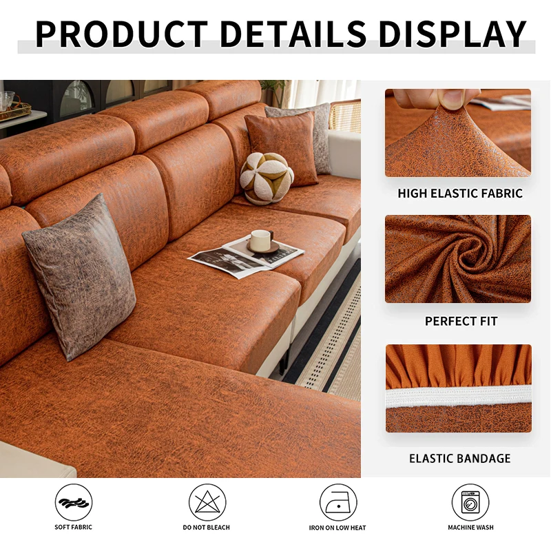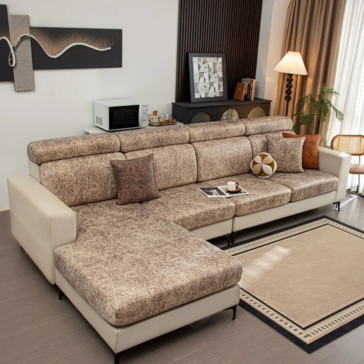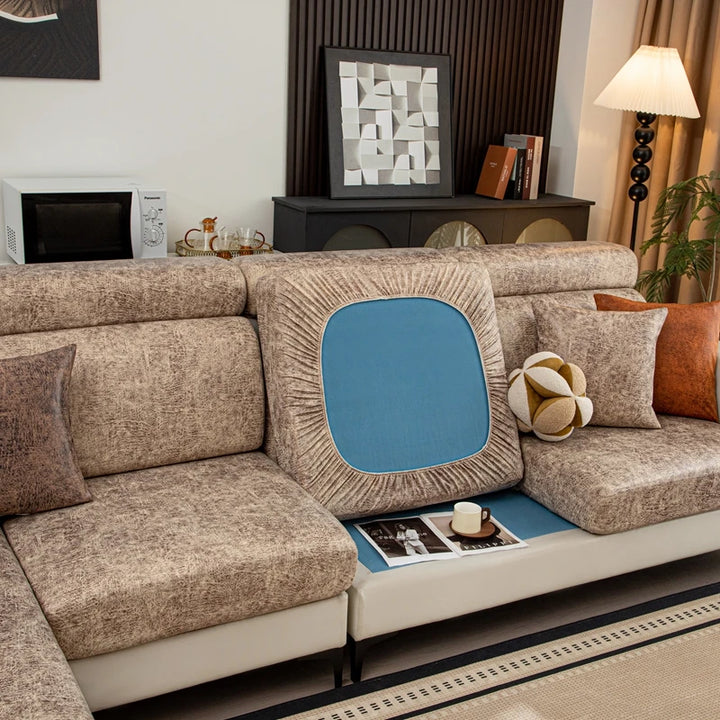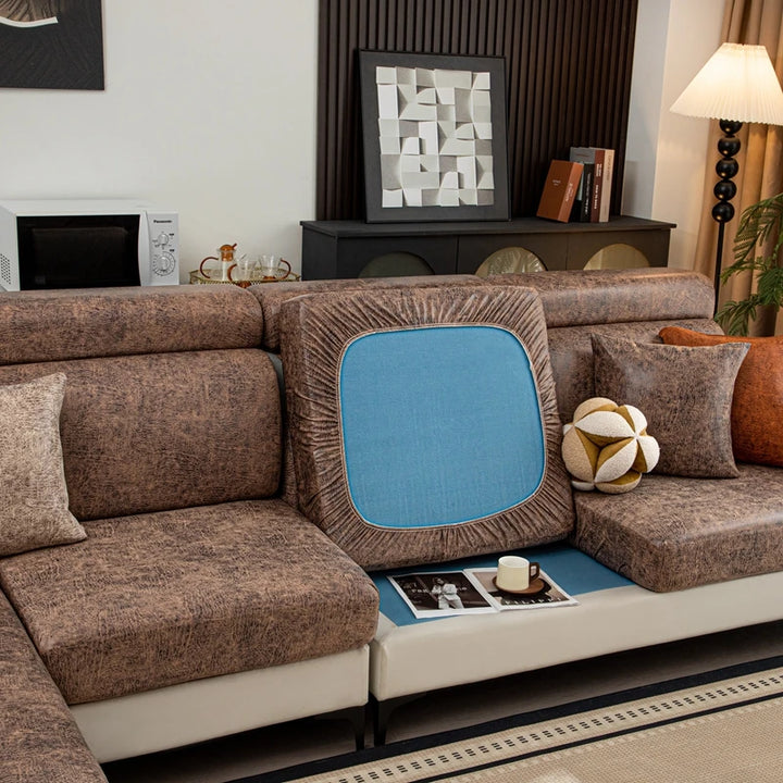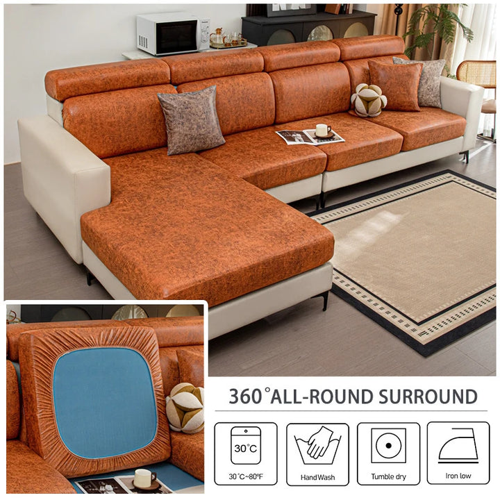 Upgrade your sofa with these leather-look stretch cushion covers. Designed for a sleek, modern look, they offer a snug, non-slip fit and protect against spills, pet hair, and daily wear. Easy to install and remove, perfect for individual seat cushions in any living room.